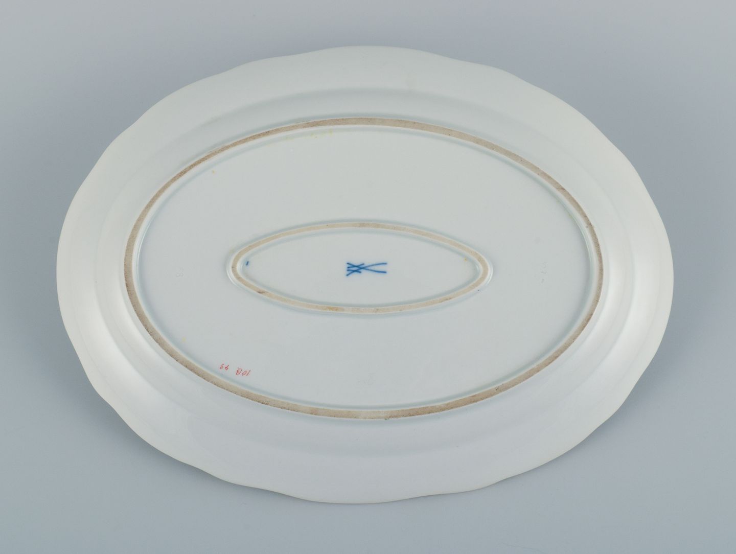 Meissen, Germany. Oval porcelain dish decorated with pink rose.