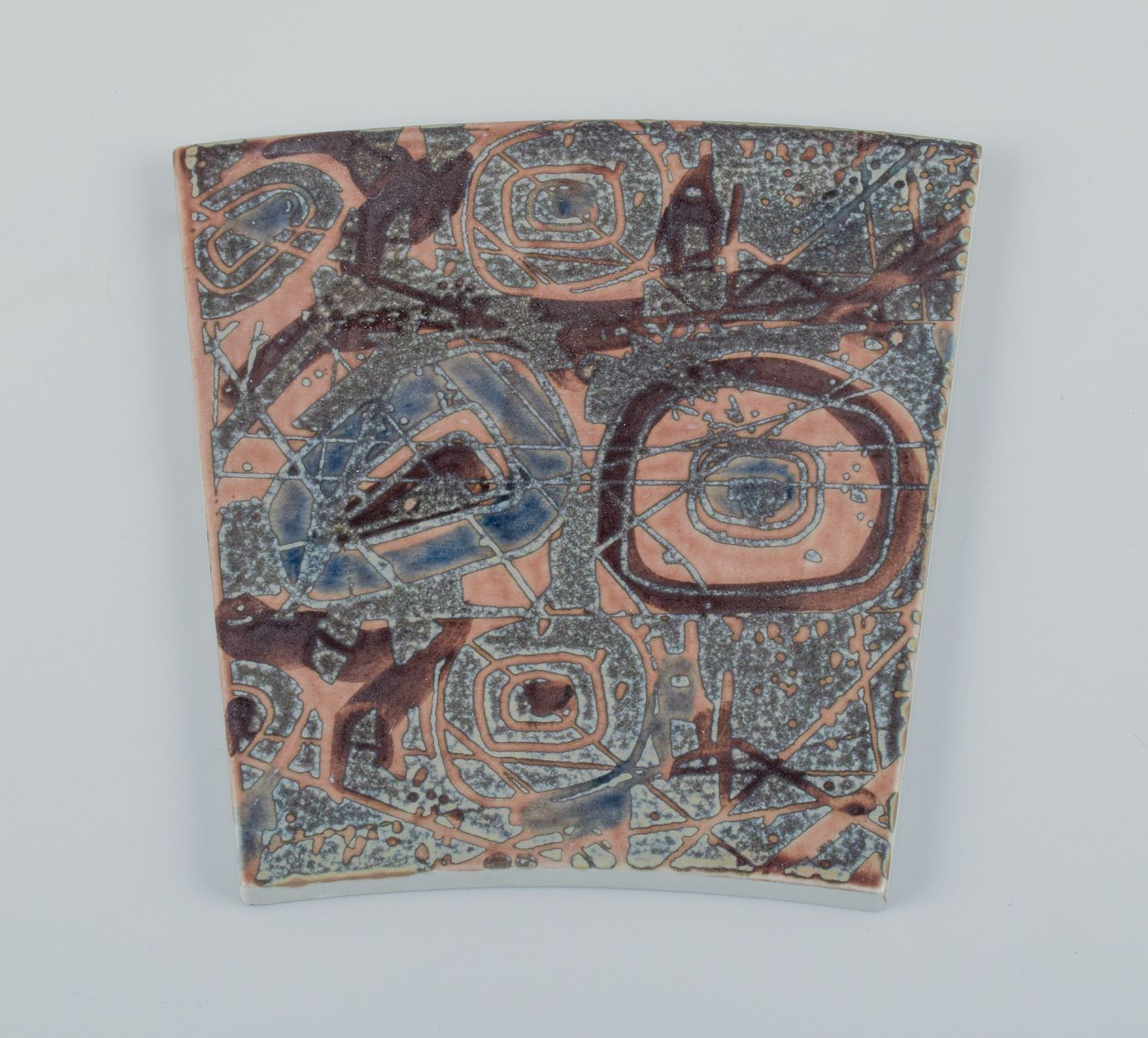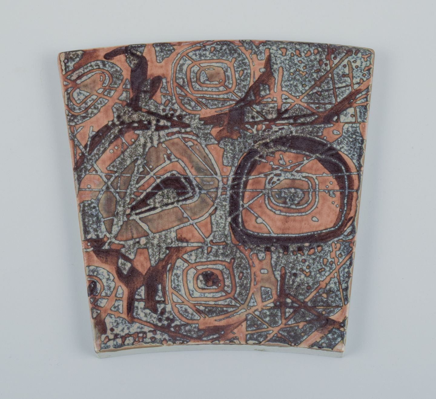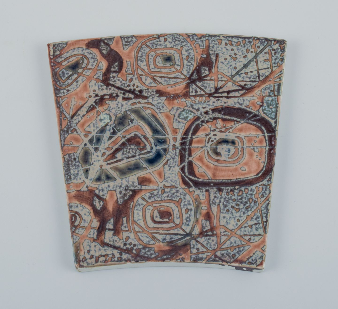 Royal Copenhagen, six Baca faience tiles with patterned glaze in brown, blue and green.