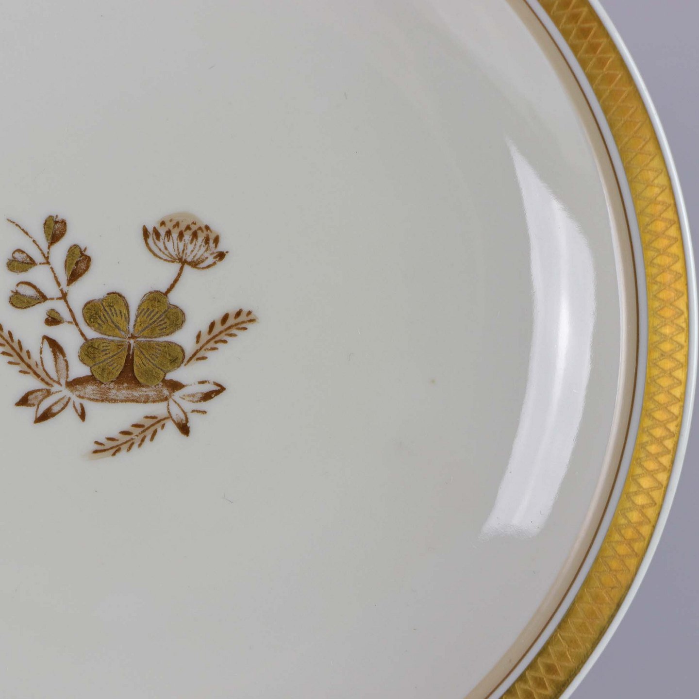 Cremefarvet porcelæn med motiv af gylden kløverblomst og bred graveret guldkantkant.