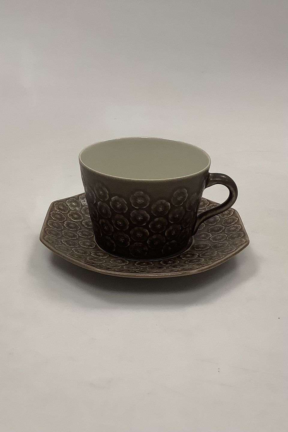 Bing og Grøndahl Kronjyden Brun Umbra Azur Kaffekop med ottekantet underkop