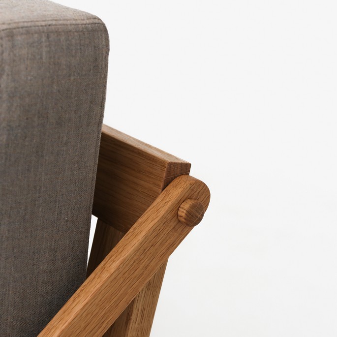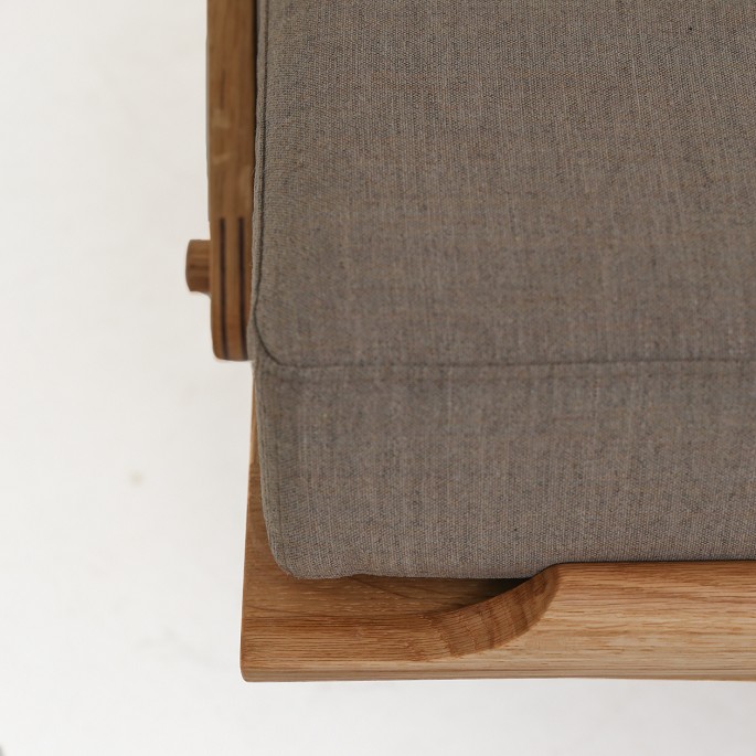 Volther Daybed med stel i olieret egetræ og tekstil fra Kvadrat - 'Remix 2', farvekode 233 og cylinderformet pude i farvekode 672.