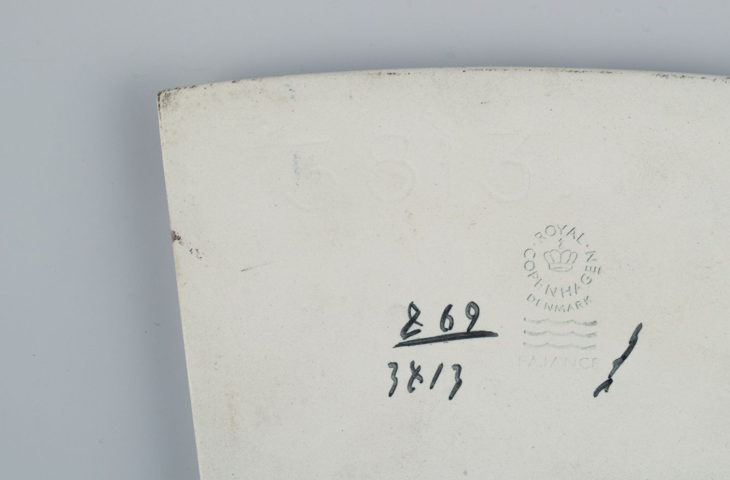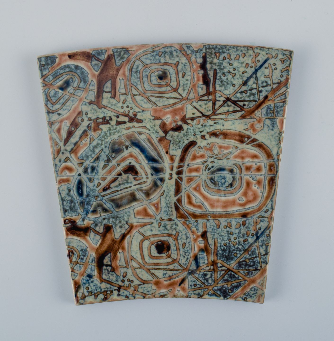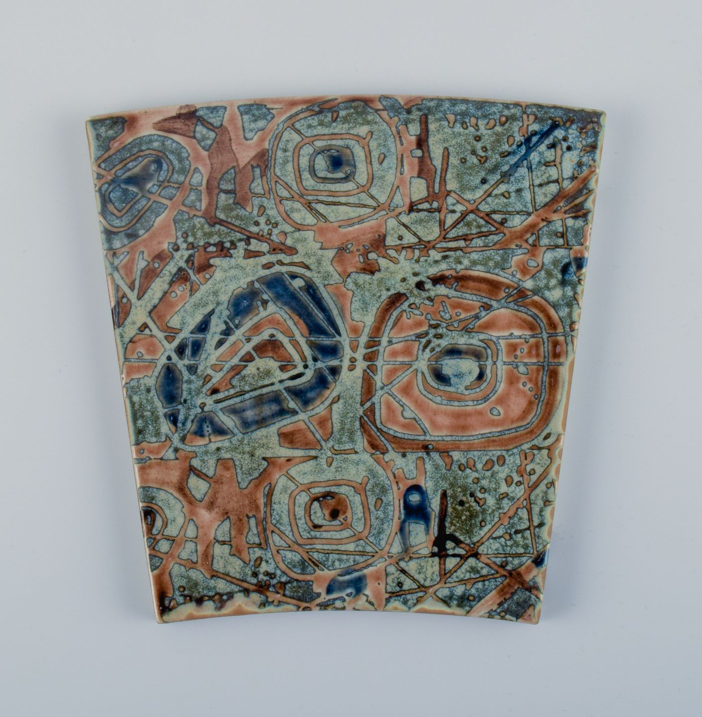 Royal Copenhagen, six Baca faience tiles with patterned glaze in brown, blue and green.