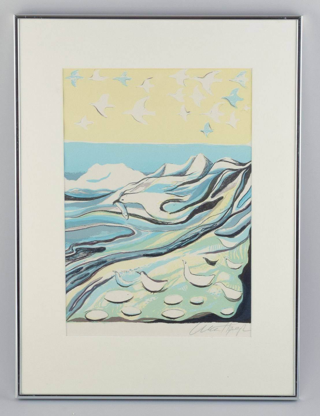 Aka Høegh, Grønlandsk kunstmaler. Farvelitografi på papir.