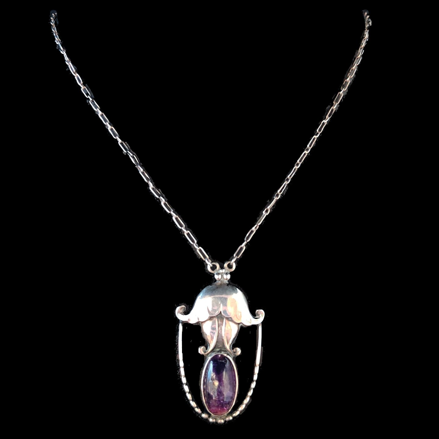 Georg Jensen; Halssmykke af sølv prydet med ametyst #42.