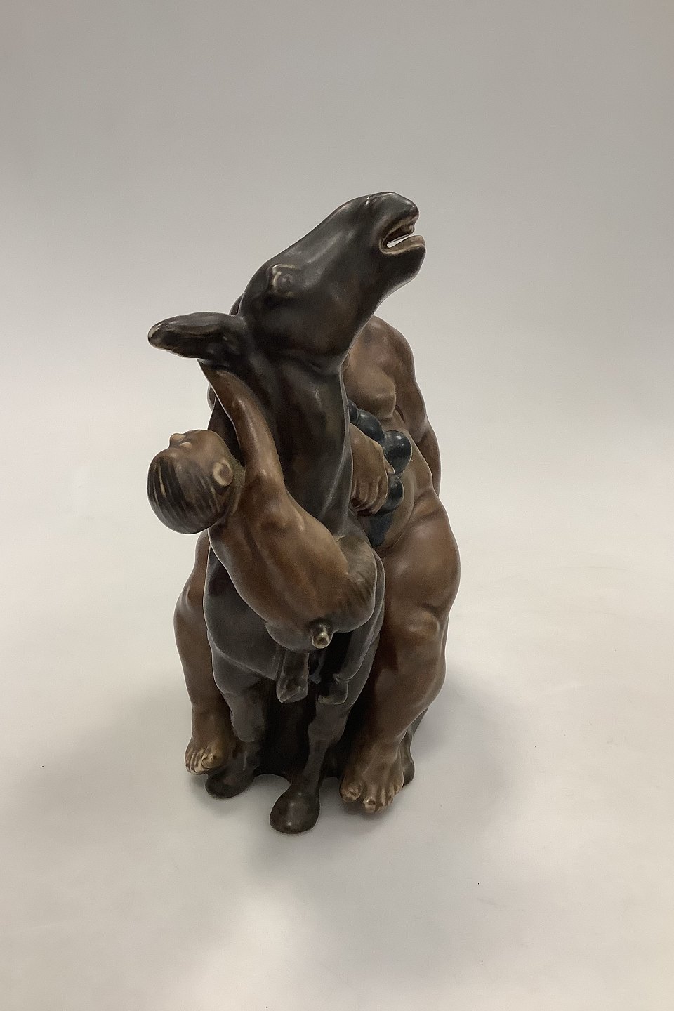 Kai Nielsen Stentøjsfigur no. 4026 Sovende Bacchus og klatrende Faun på Æsel