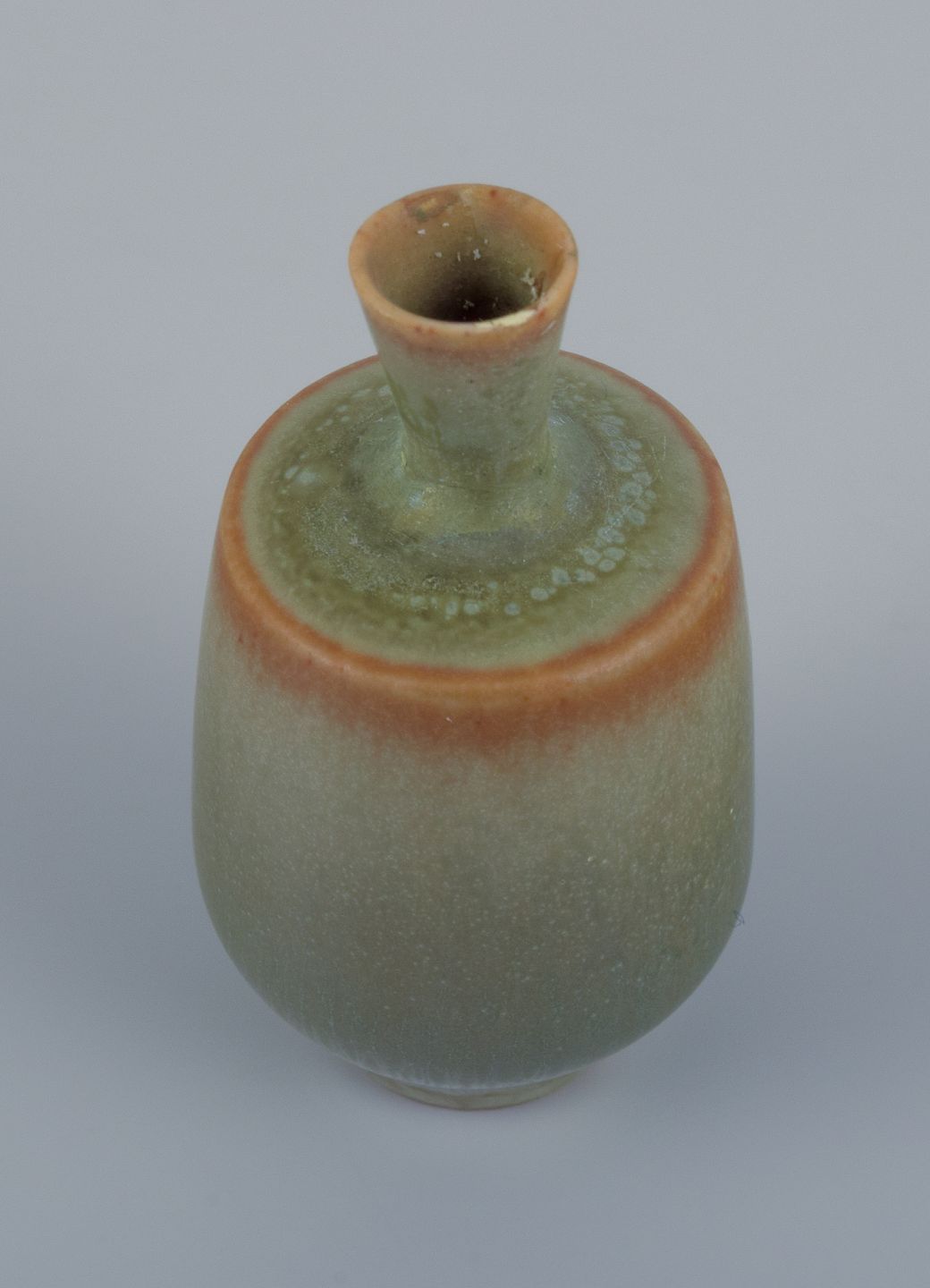Berndt Friberg for Gustavsberg, Studiohand miniature vase with glaze in shades of green.