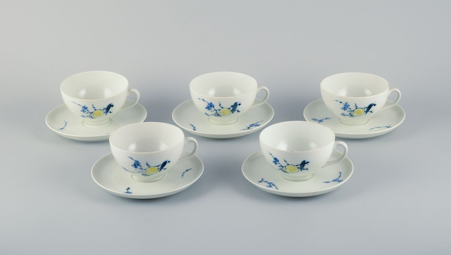 Johannes Hedegaard for Royal Copenhagen, Denmark, Rimmon, a five-person set of large tea cups and saucers.