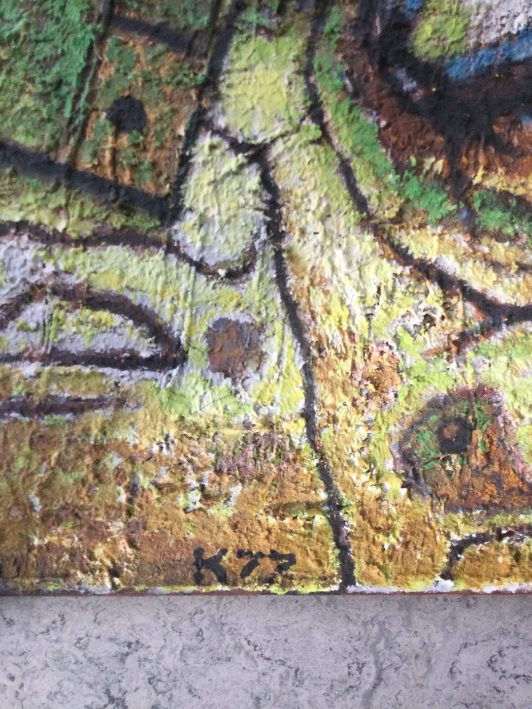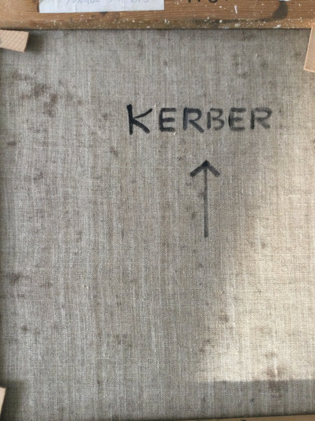 Sign.: K 77 samt Kerber (bagpå lærred).