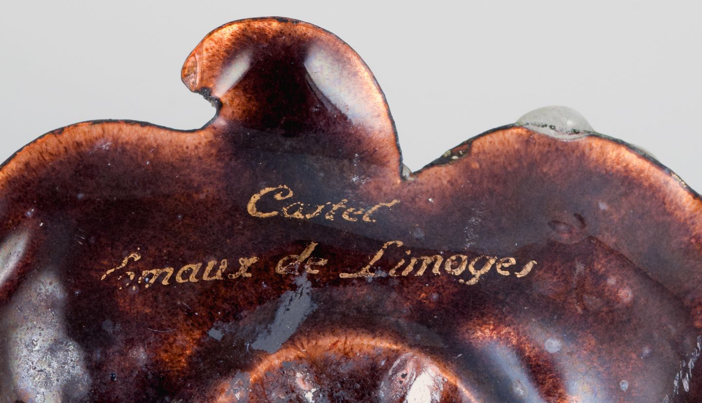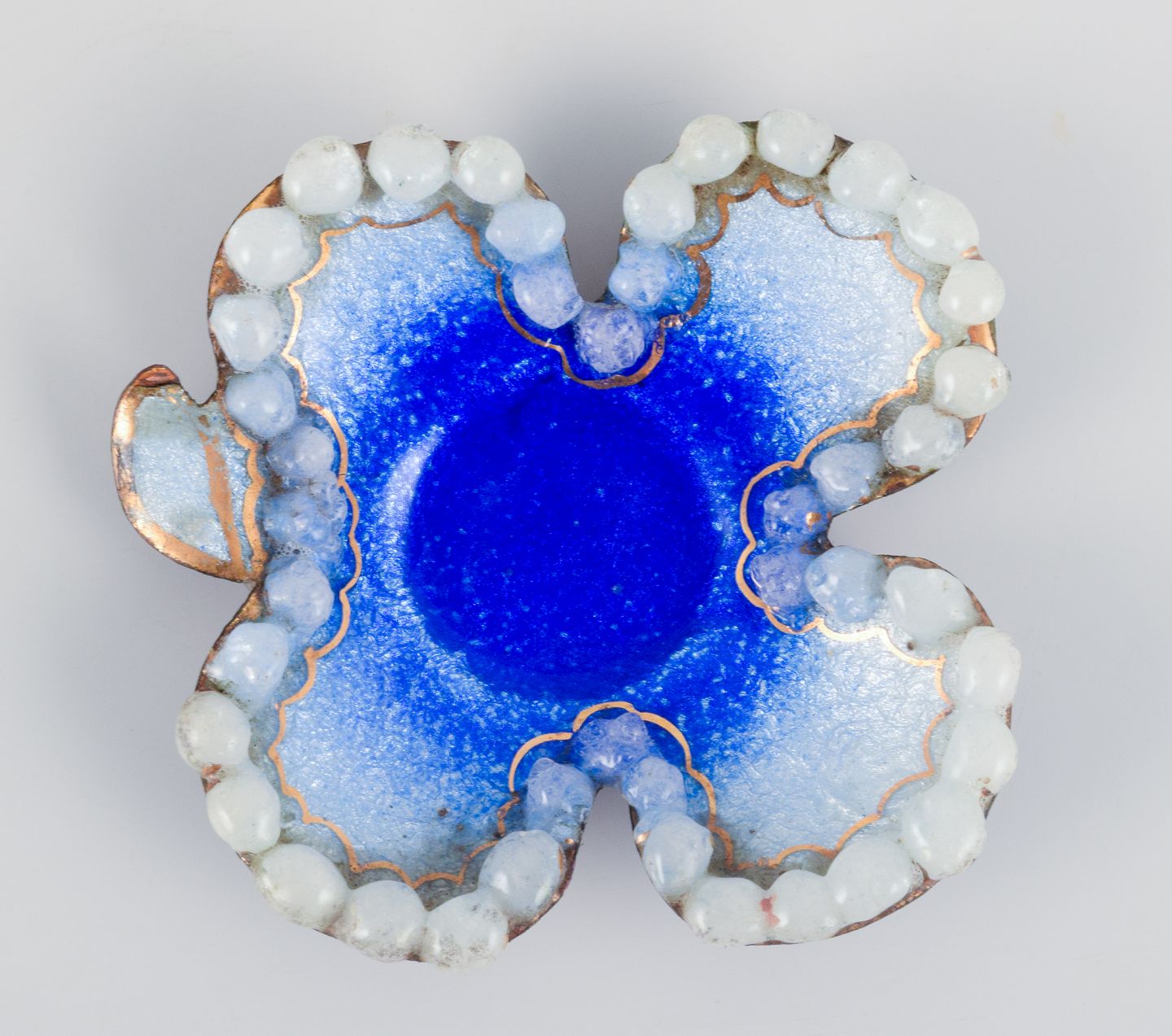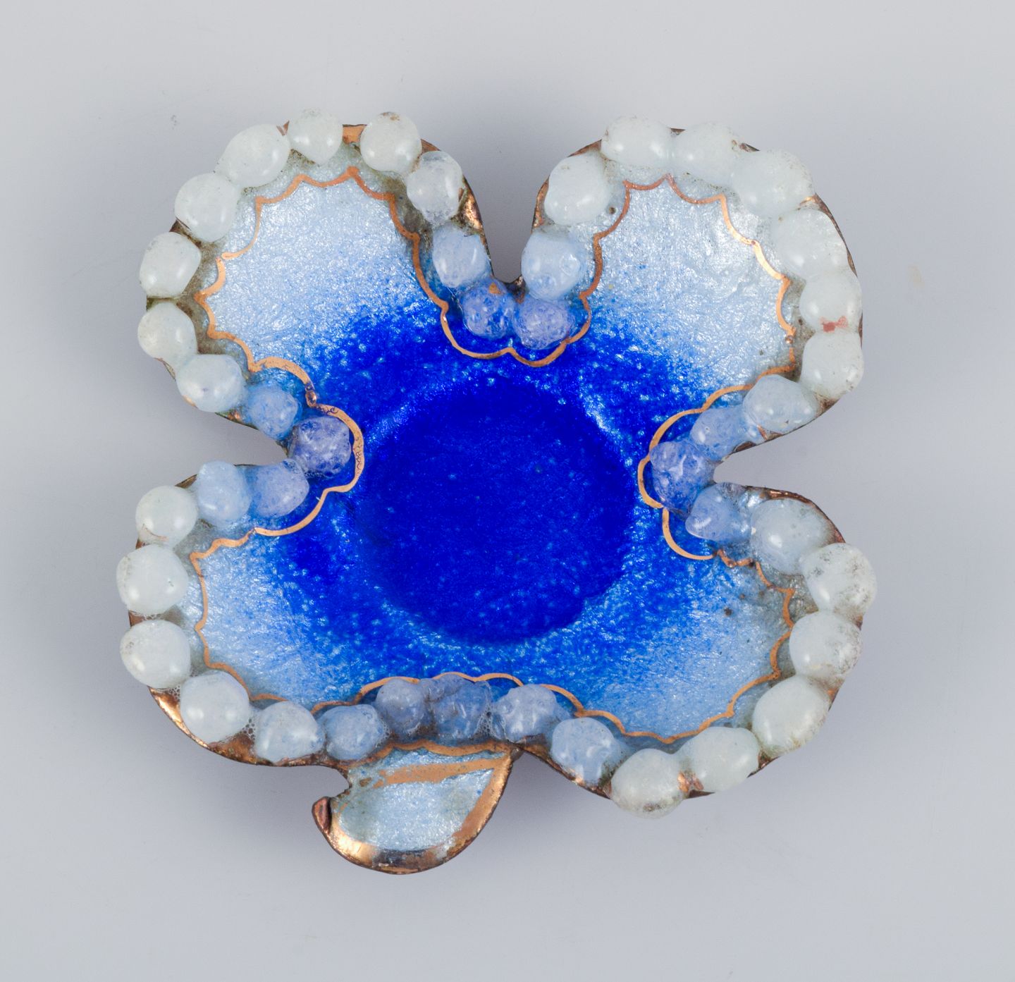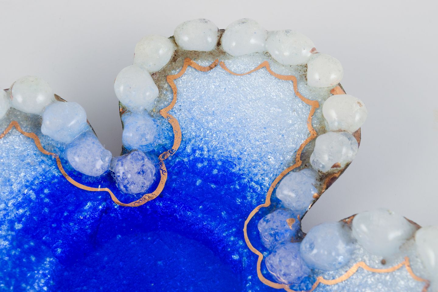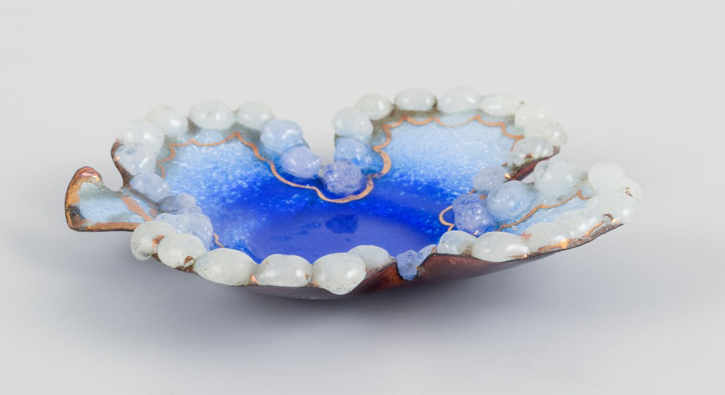 Castel for Limoges, Frankrig, emaljeskål med glaskugler i kanten. Emalje i blå toner.