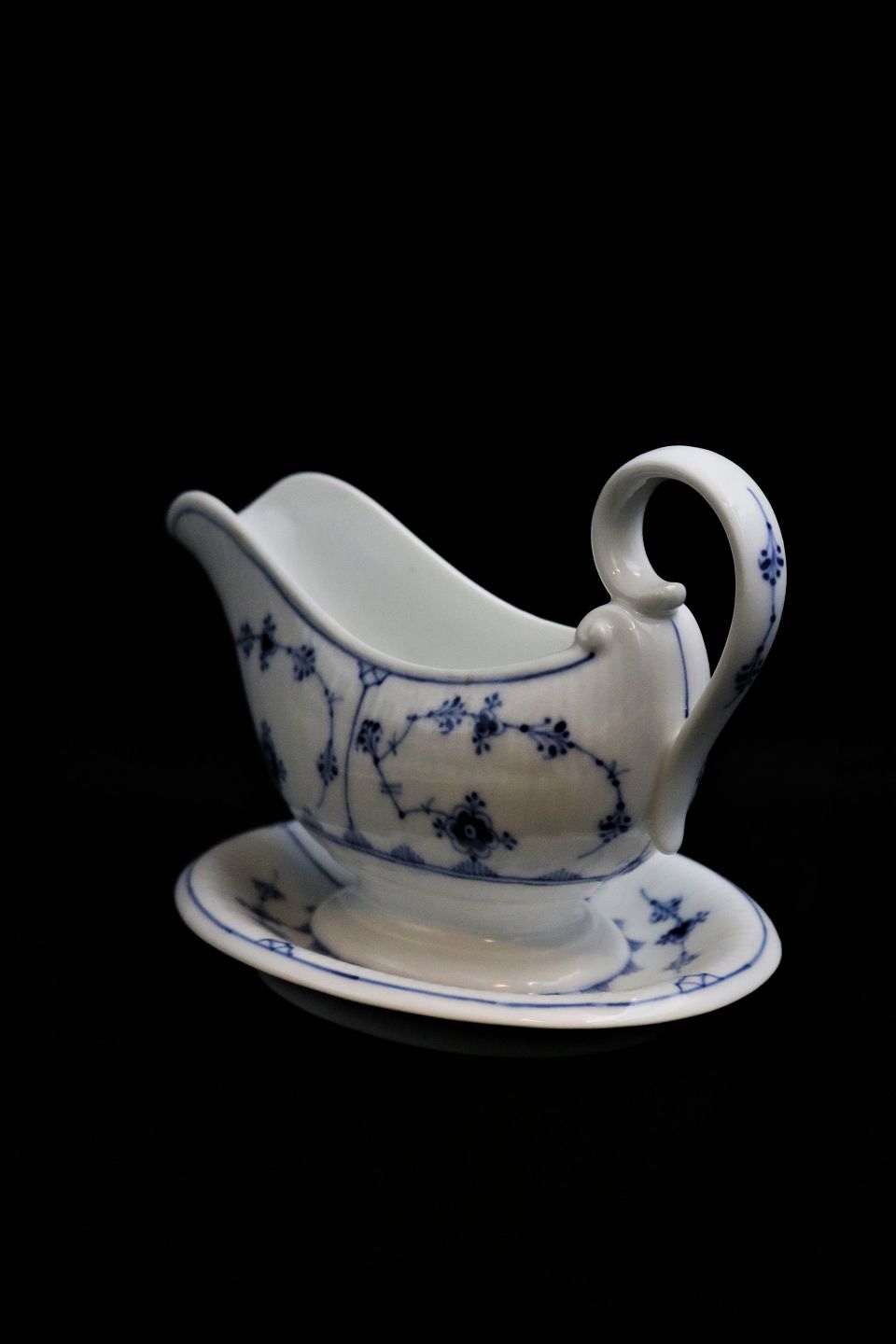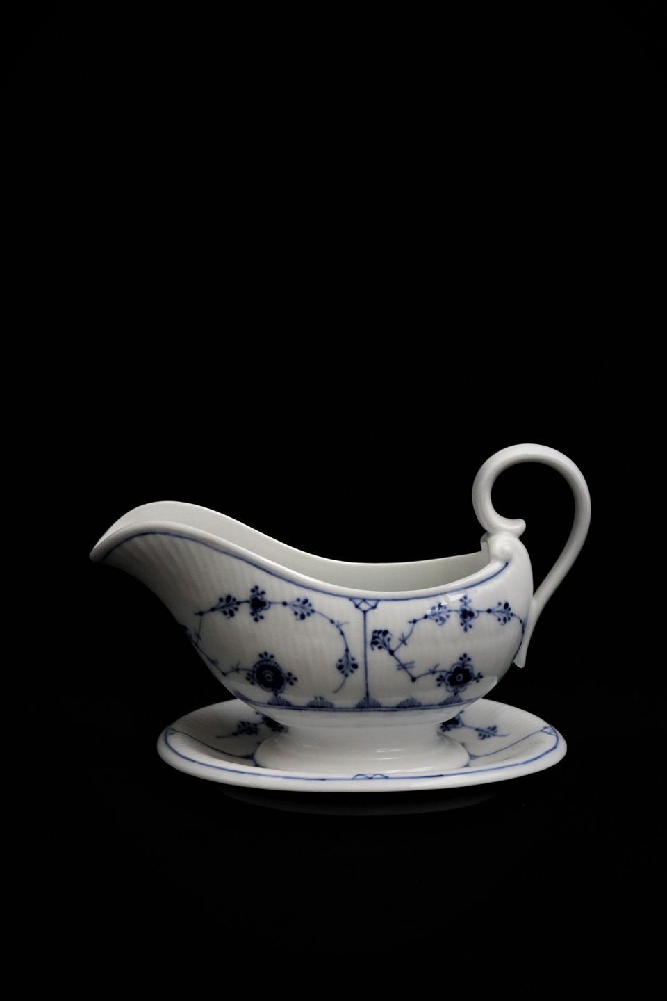 Royal Copenhagen Musselmalet Riflet sovsekande på fast underfad.