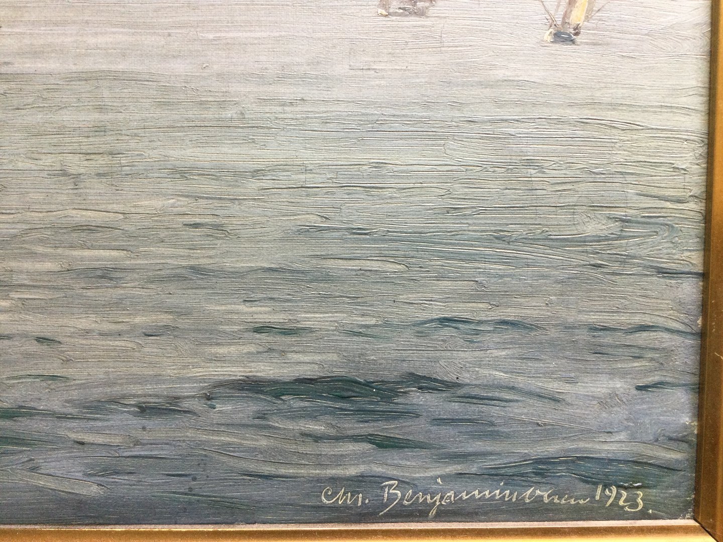 Chr. Benjamin Olsen var meget kendt som den sidste af de store marinemalere. Benjamin Olsen var uddannet fra Teknisk Skole i Svendborg og rejste 1893 til København og blev vejledt i malerkunsten af Christian Blache. Fra 1906 virkede han som porcelænsmaler, først ved B&G og siden ved Den Kongelige Porcelænsfabrik.