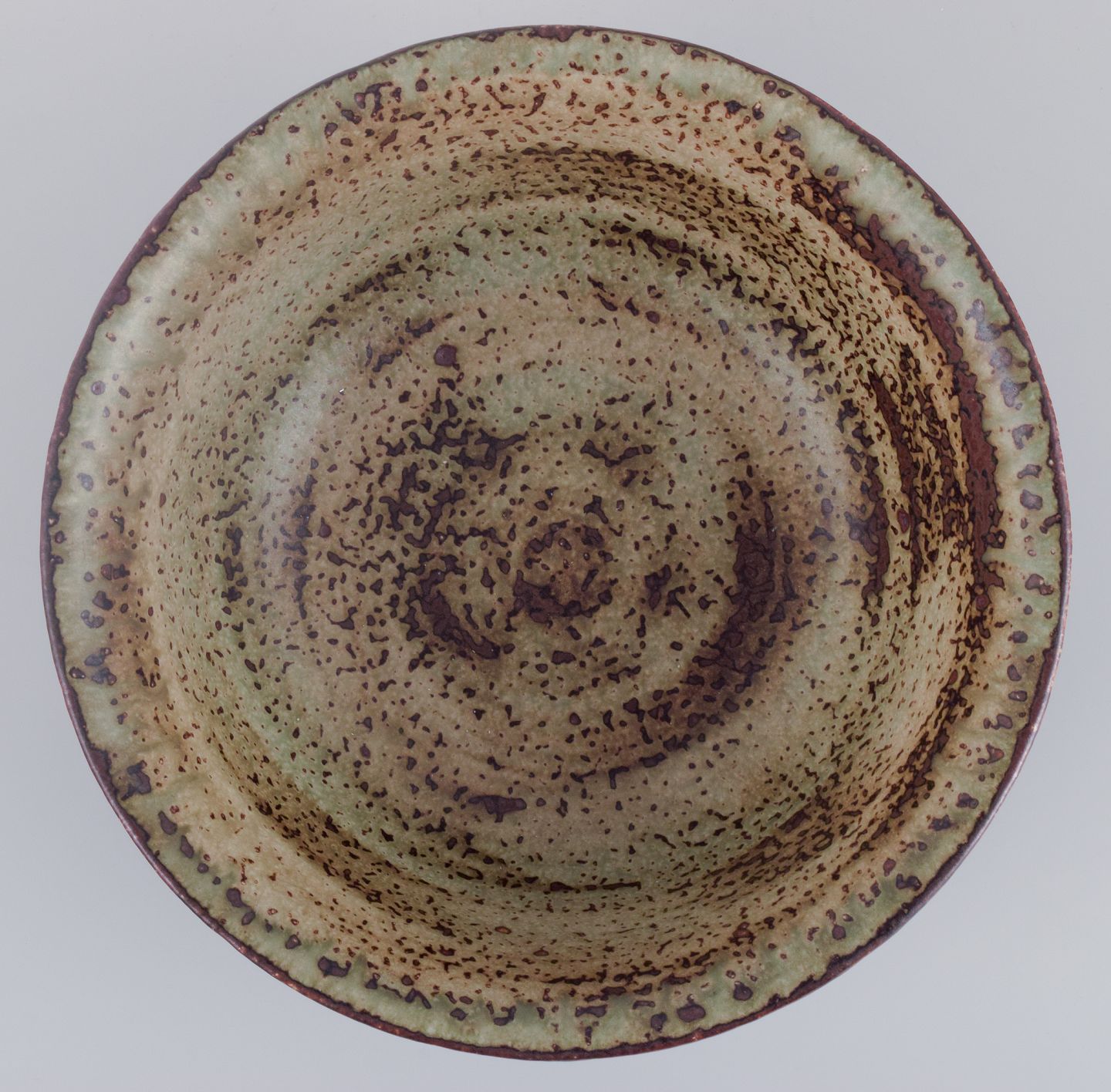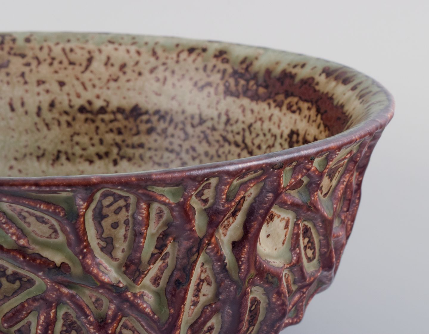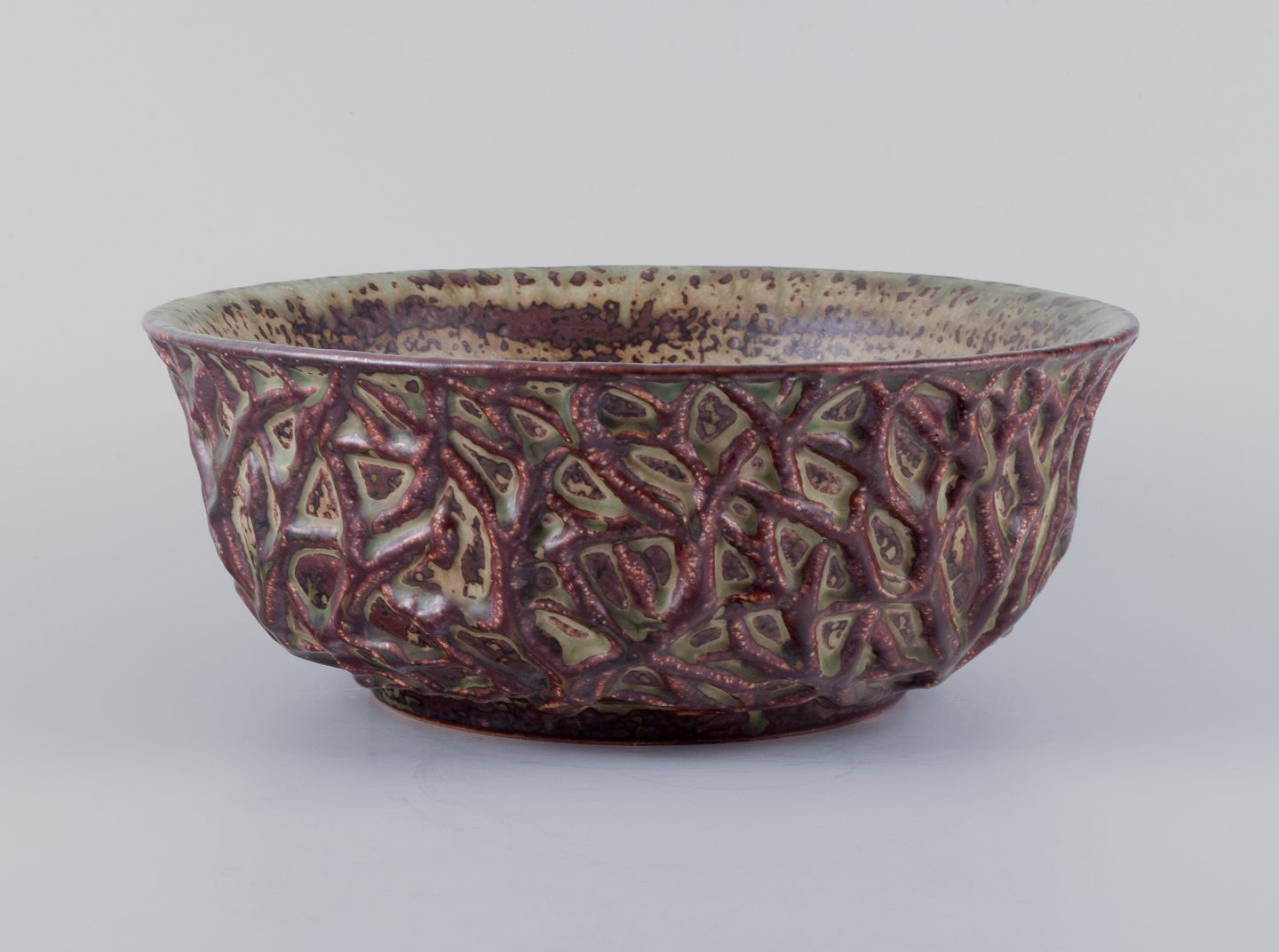 Axel Salto for Royal Copenhagen, large ceramic bowl designed with leaf patterns in relief.