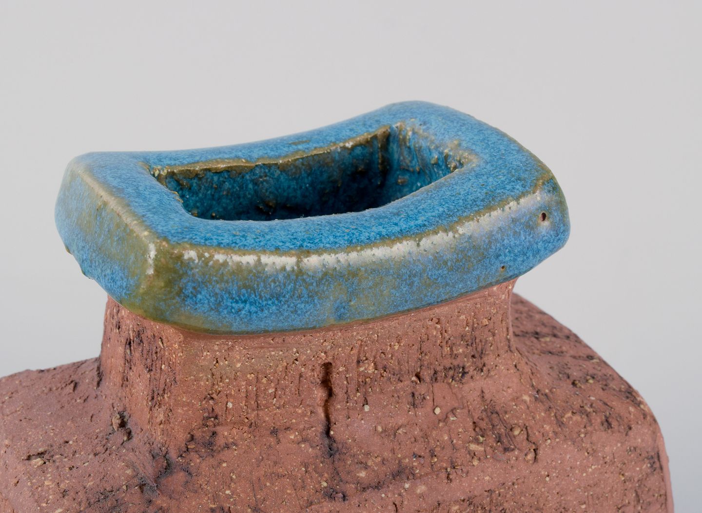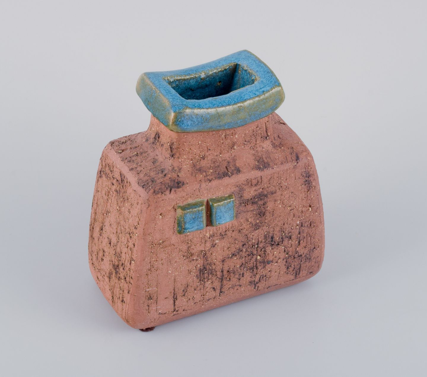Curt Addin, eget værksted, svensk keramiker. Unika keramikvase i modernistisk og stilrent design. Chamotte-ler, glasur i blågrønne nuancer.