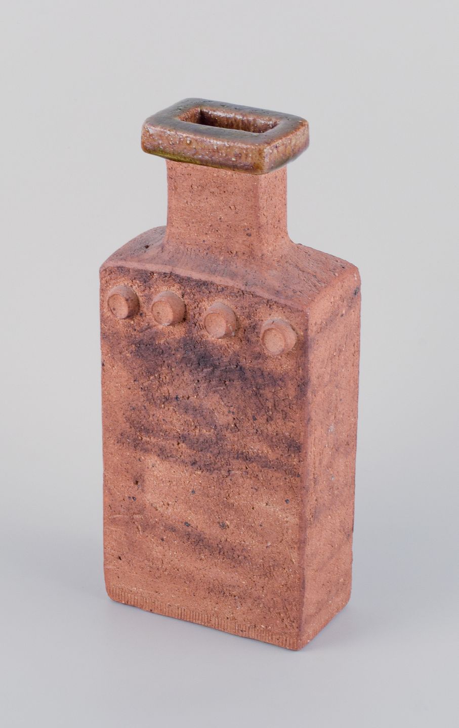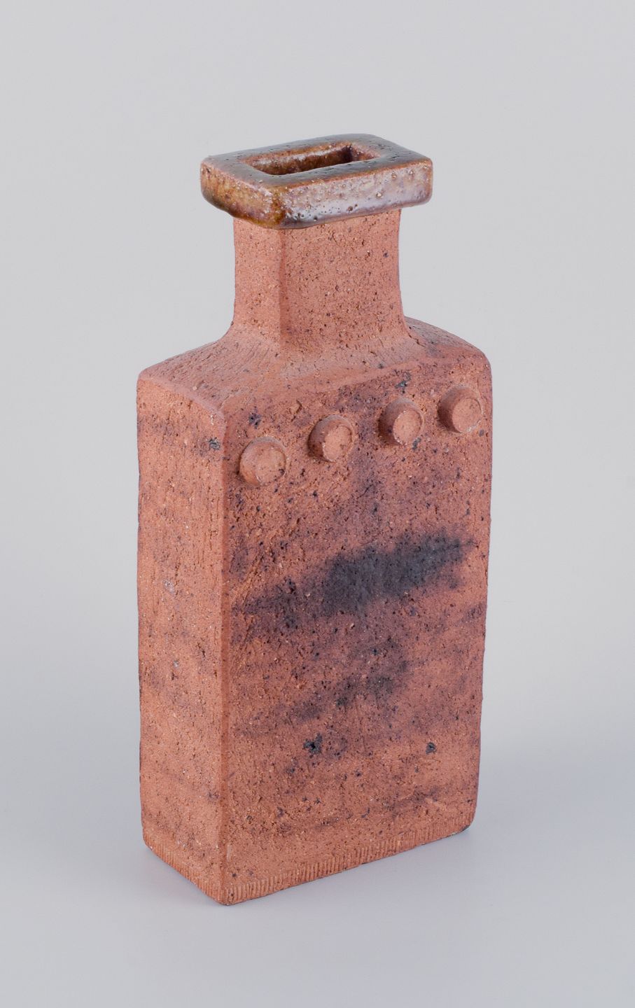 Curt Addin, eget værksted, svensk keramiker. Stor unika keramikvase i modernistisk og stilrent design. Chamotte-ler.