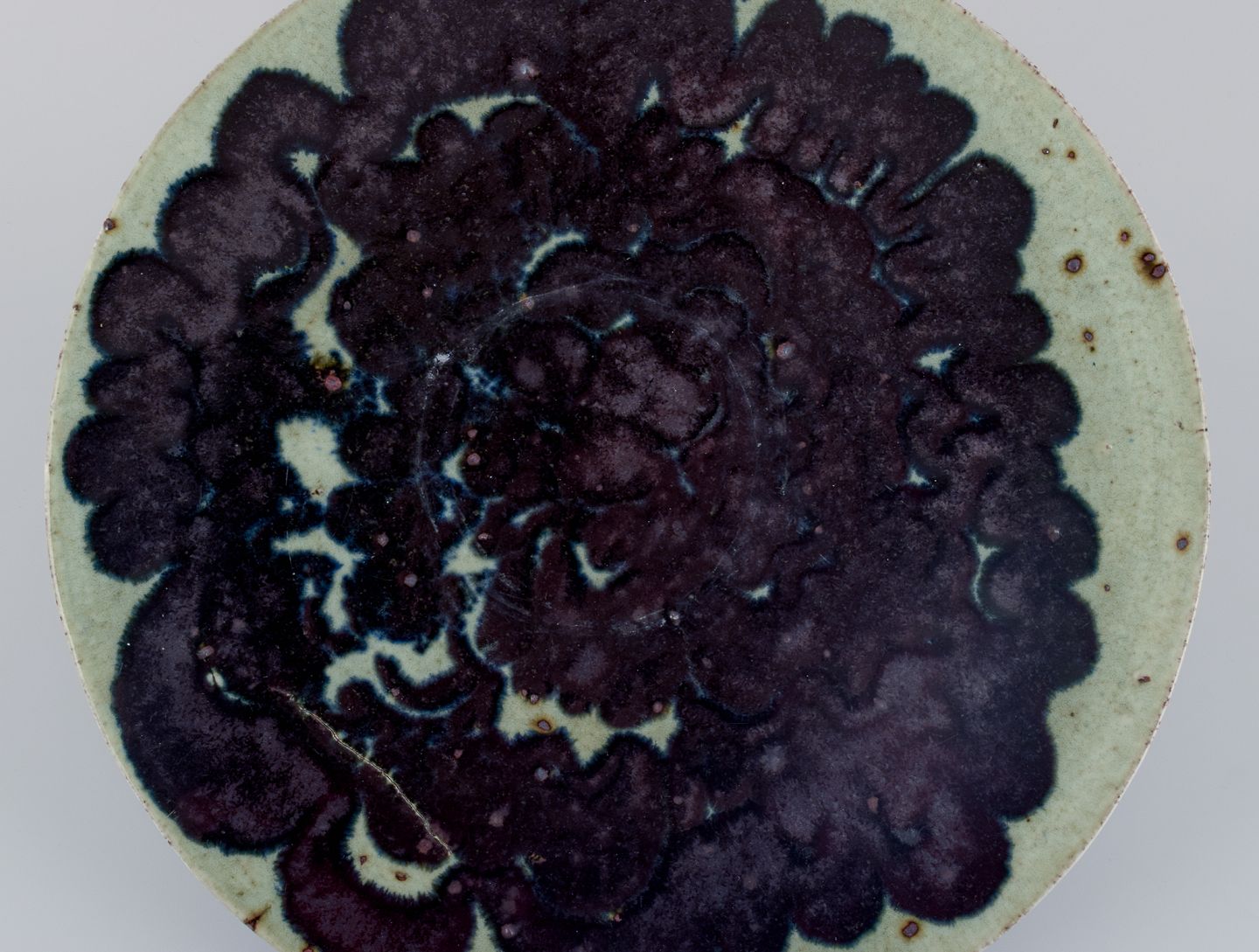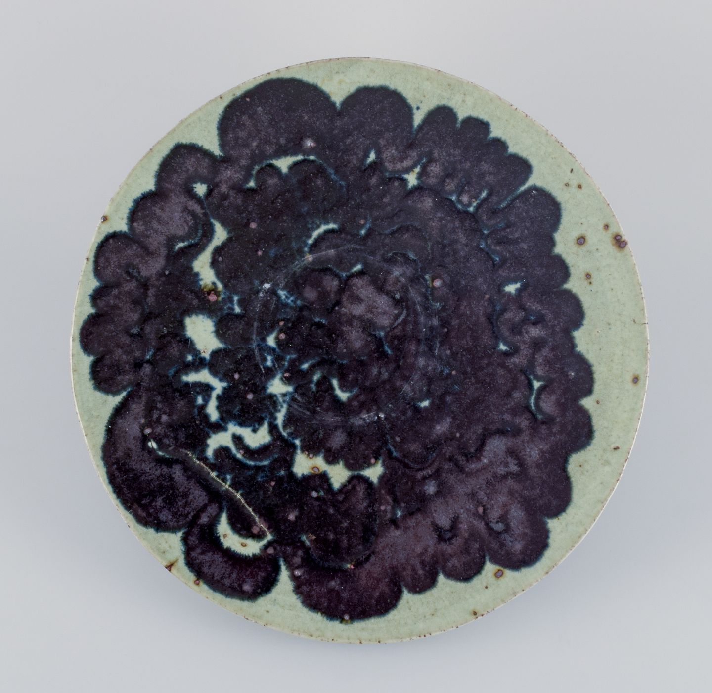 Marianne Westman for Rörstrand, stort håndlavet unika fad i stentøj dekoreret med abstrakt motiv.