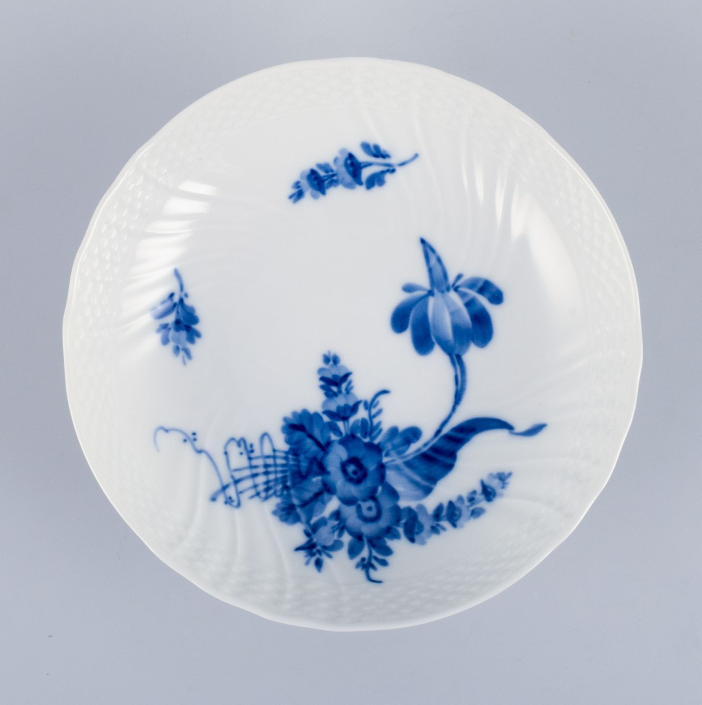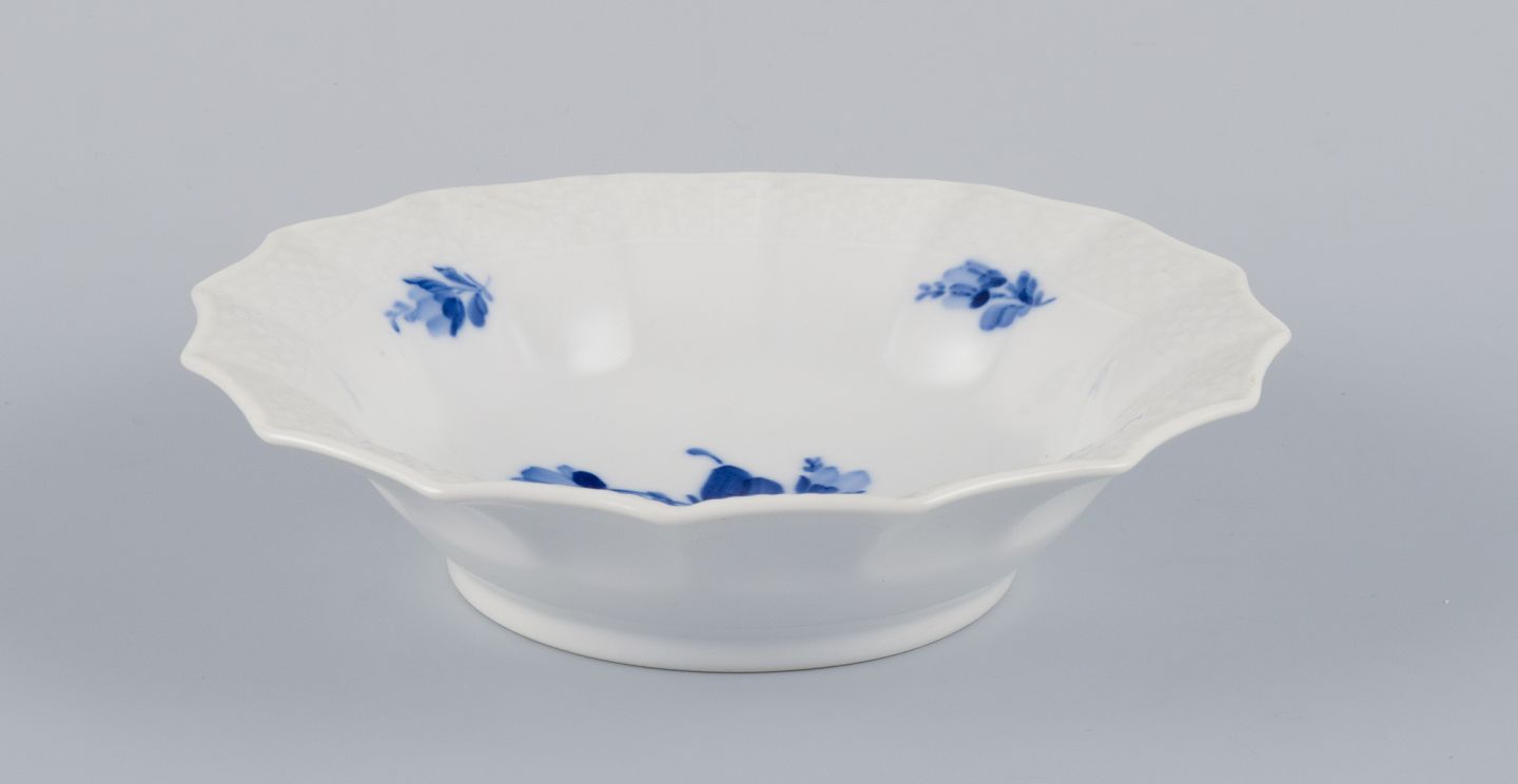 Royal Copenhagen, Blå Blomst, opsats og skål i håndmalet porcelæn.
