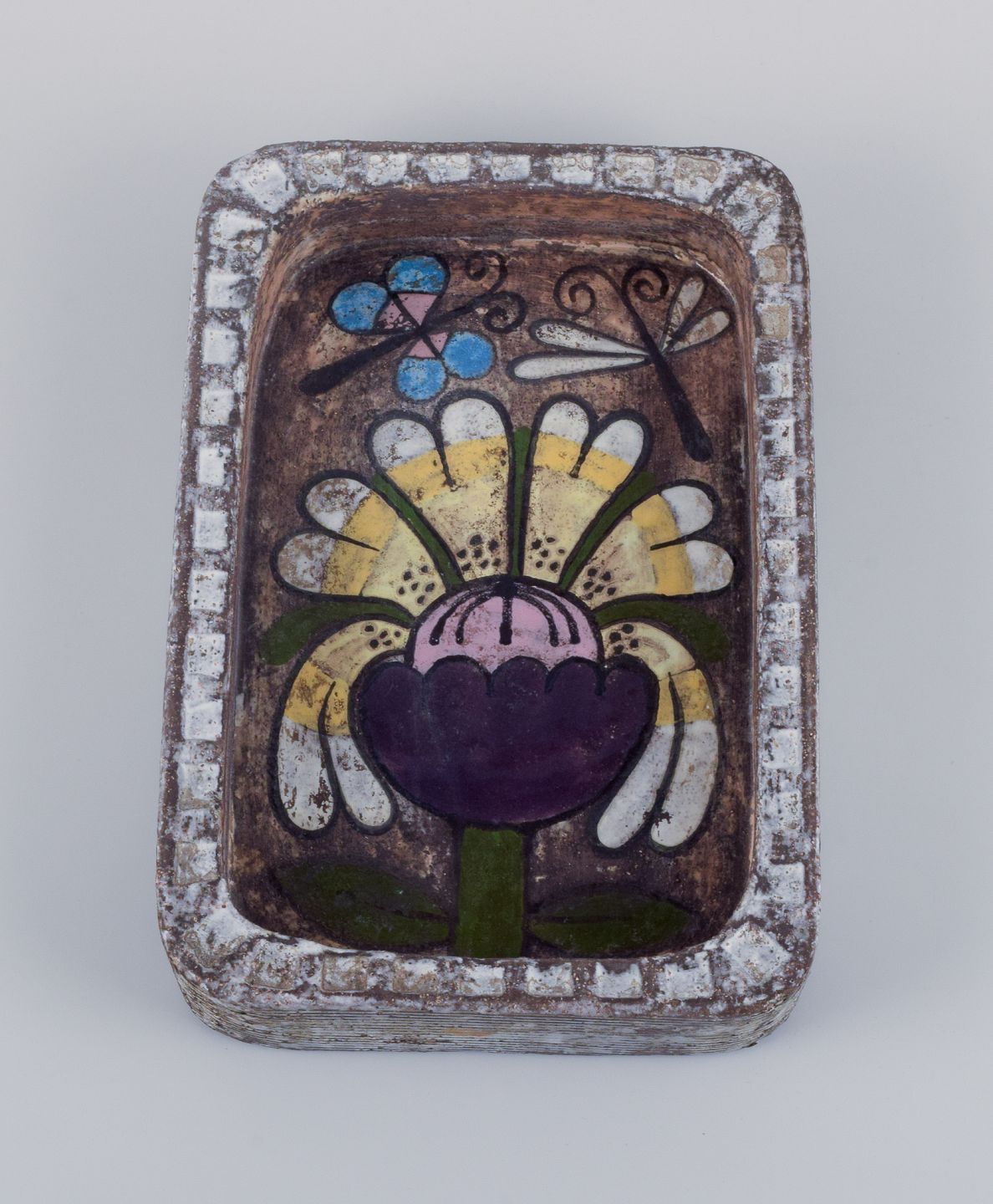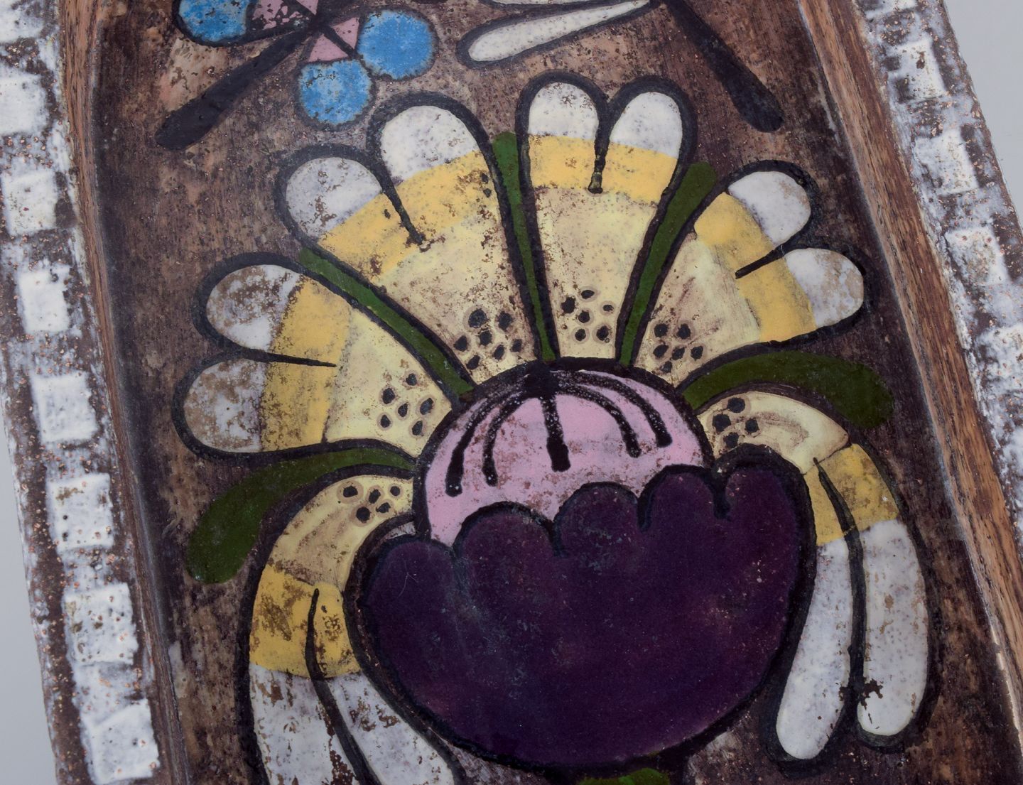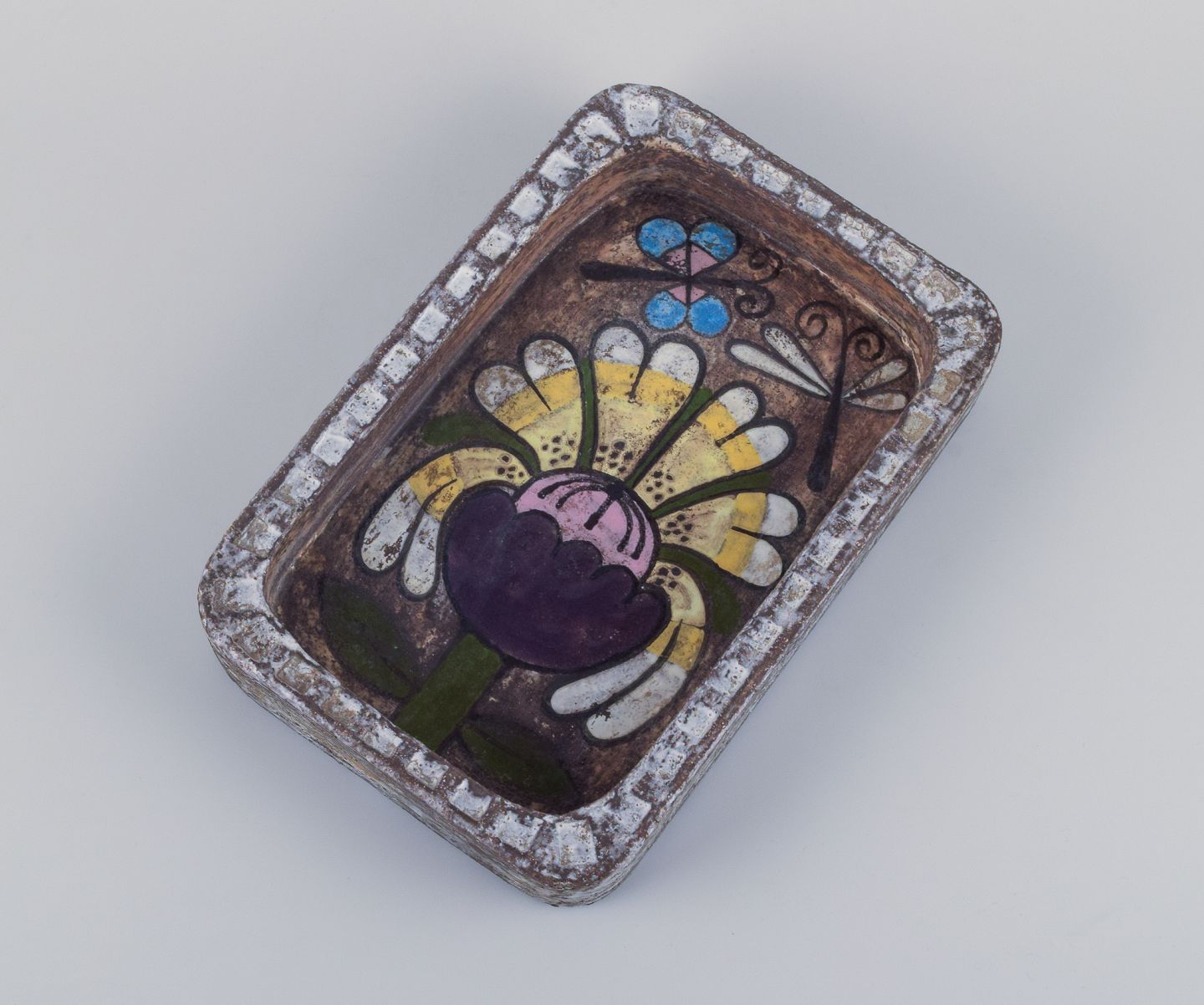 Mari Simmulson for Upsala-Ekeby, stor skål i keramik dekoreret med solsikke og sommerfugle.