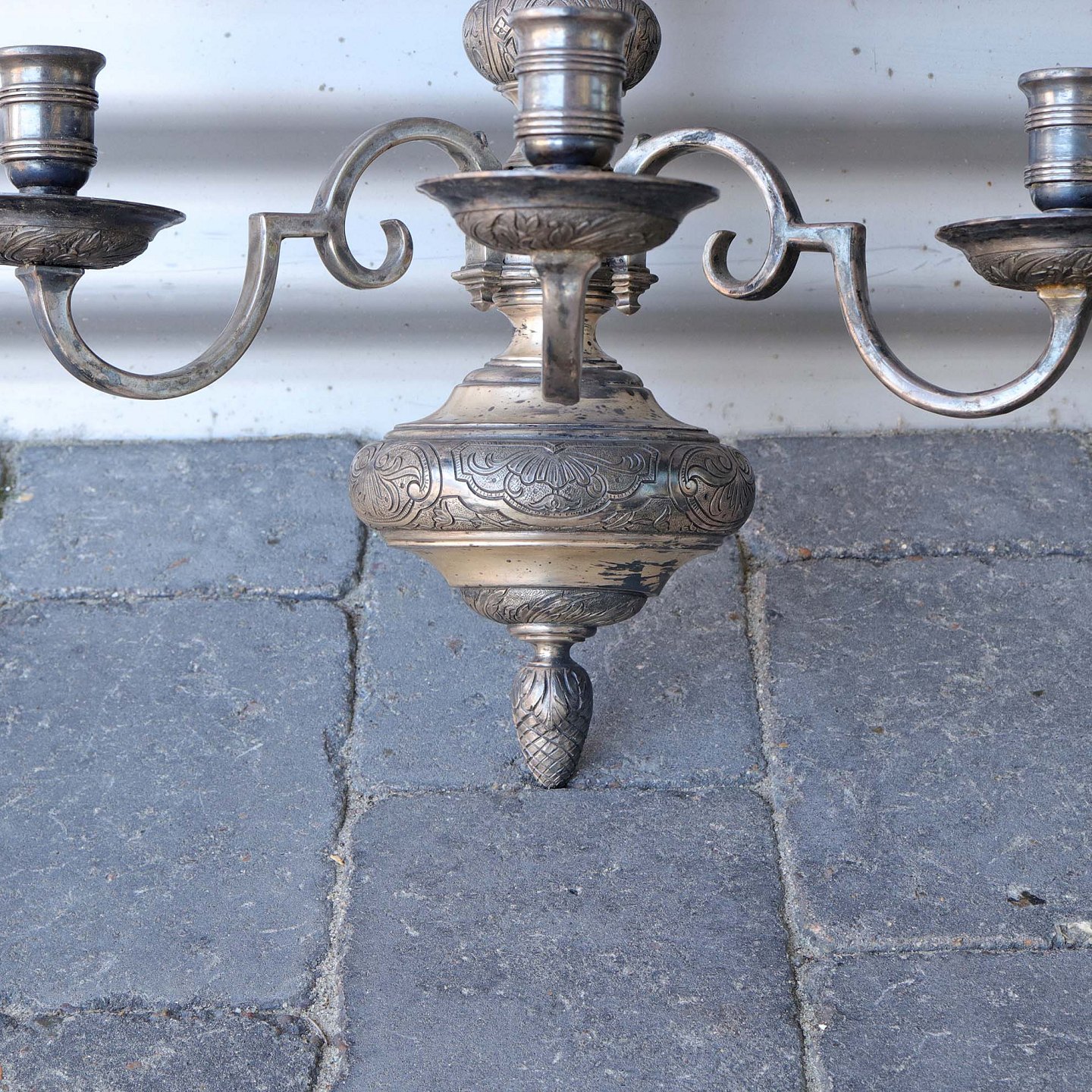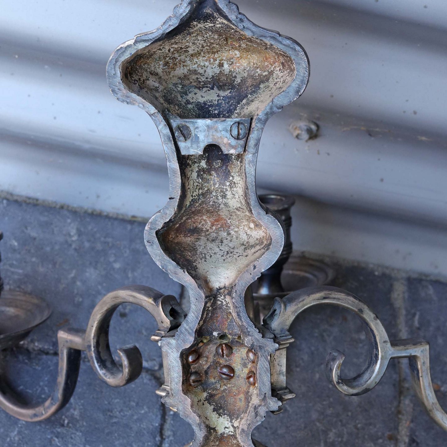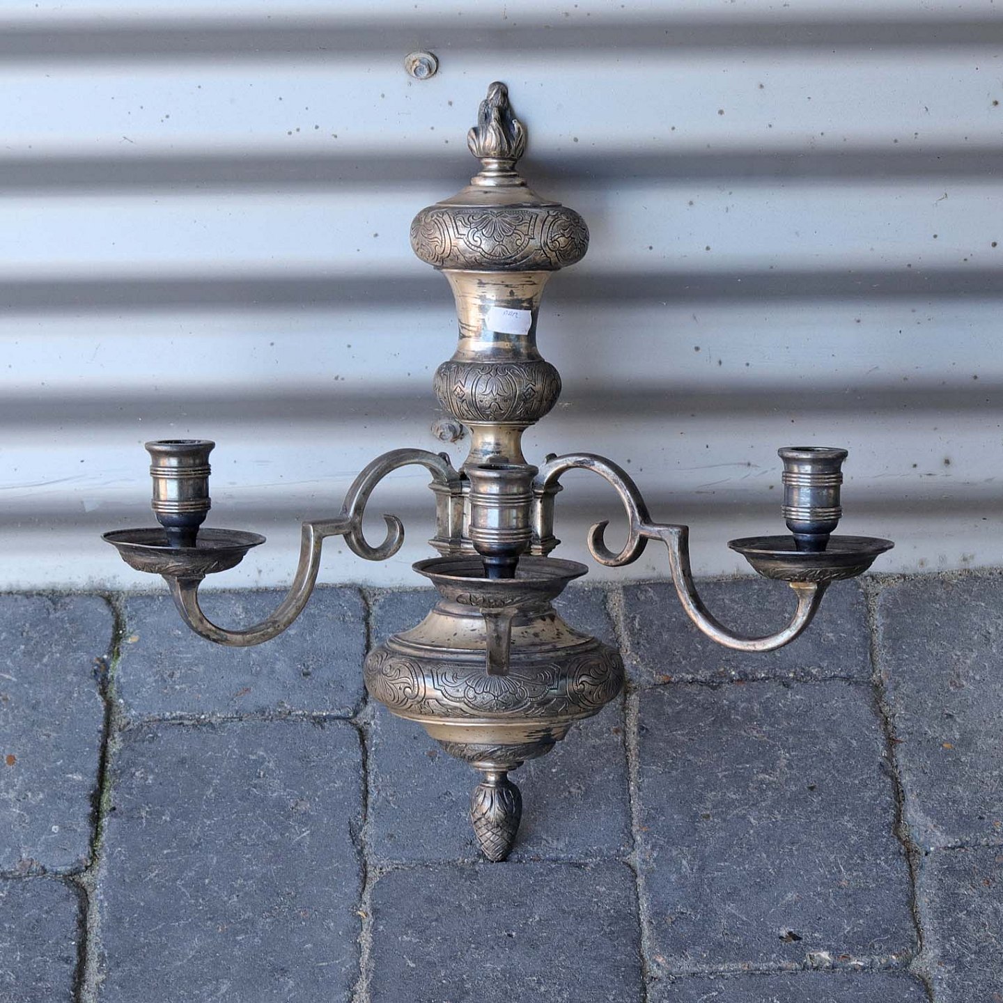 To forsølvet solide kandelaber med tre arme til vægophæng