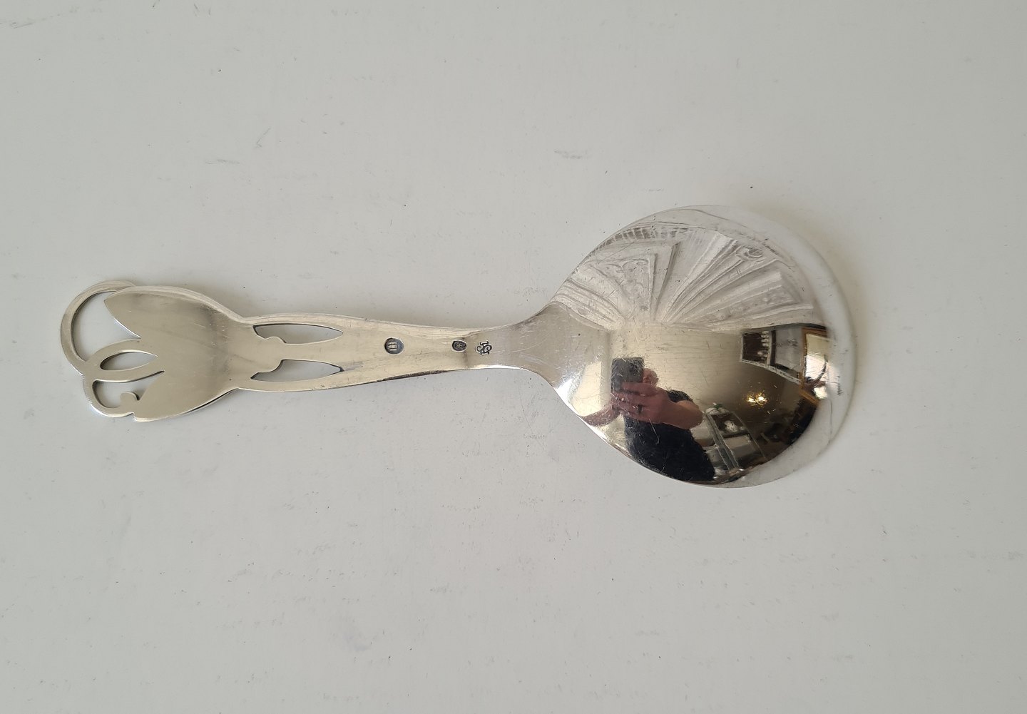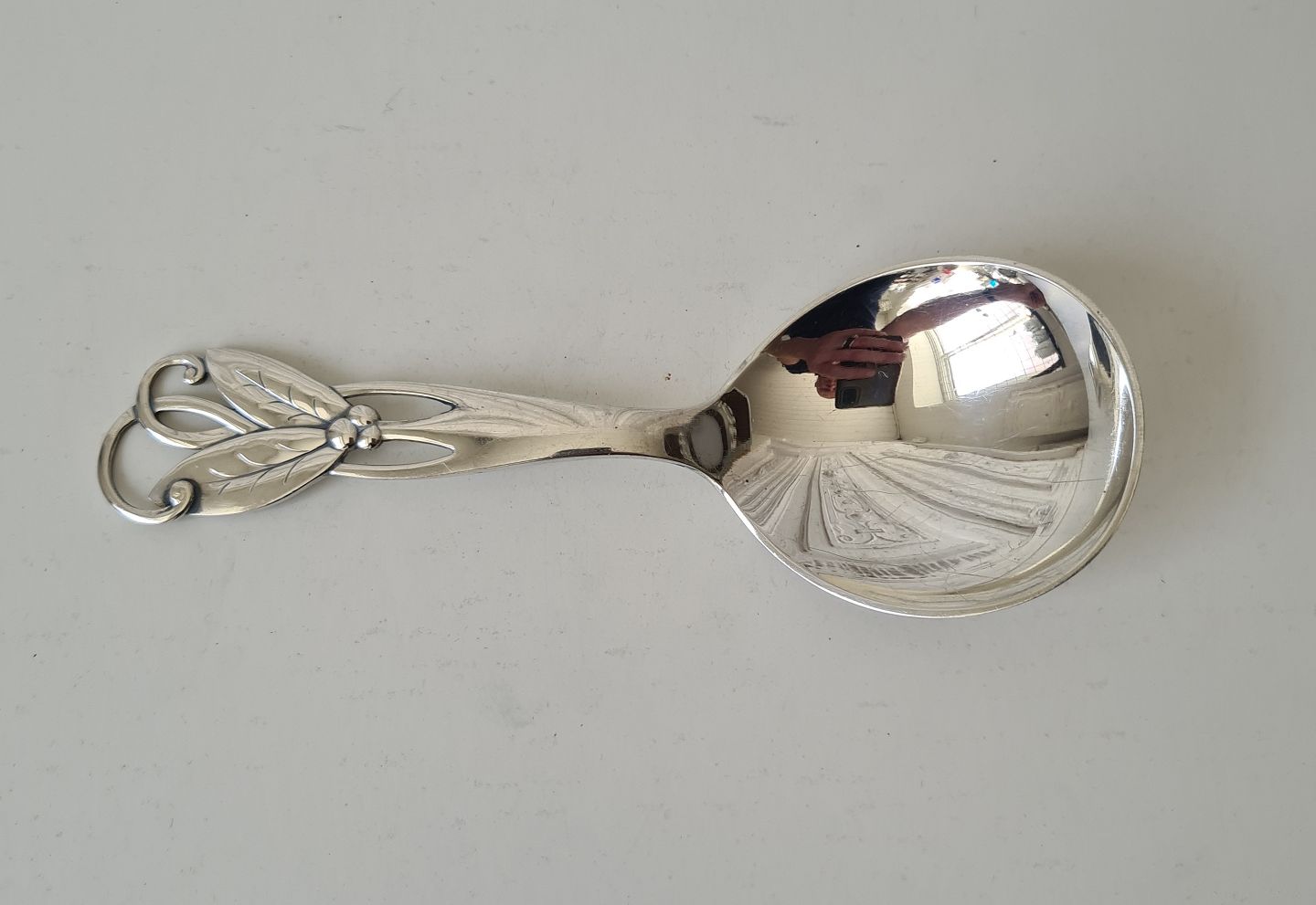 Serveringsske i sølv dekoret med blade fra 1936