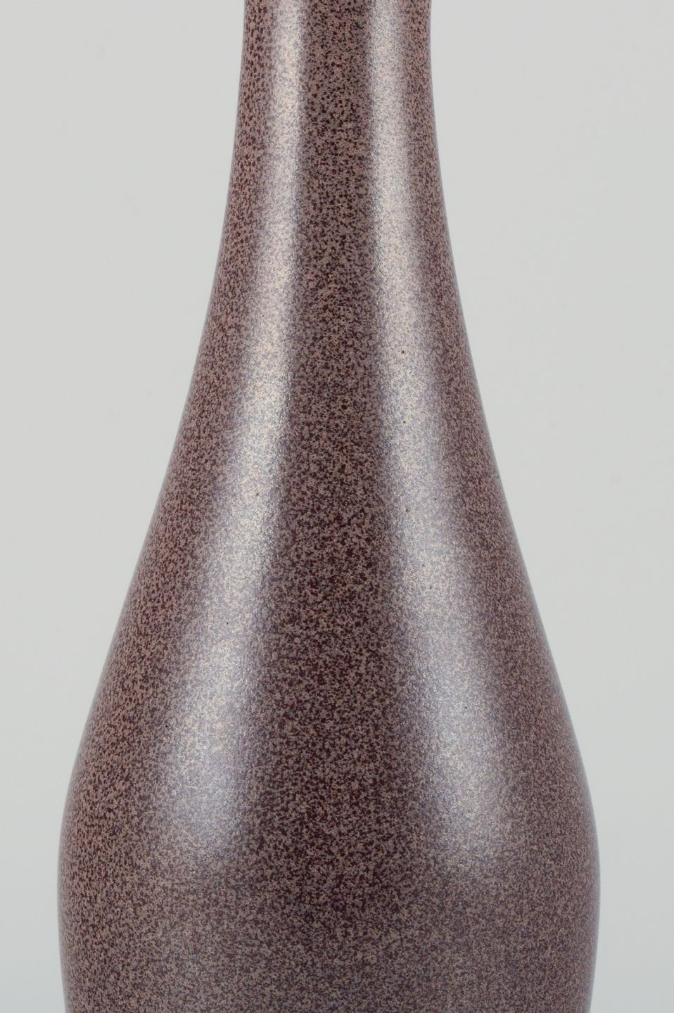Europæisk studiokeramiker, keramikvase med spættet glasur i brune nuancer.