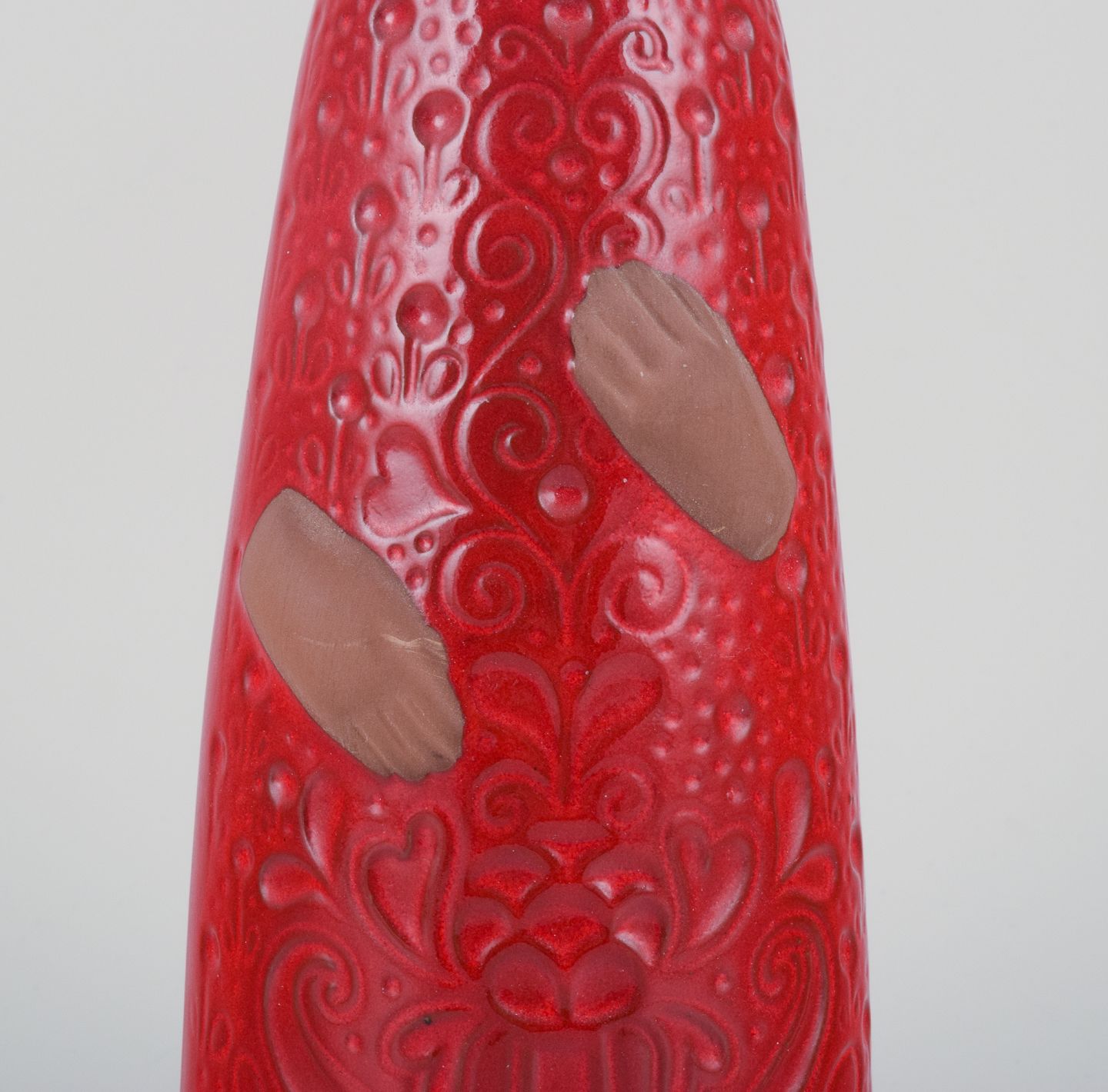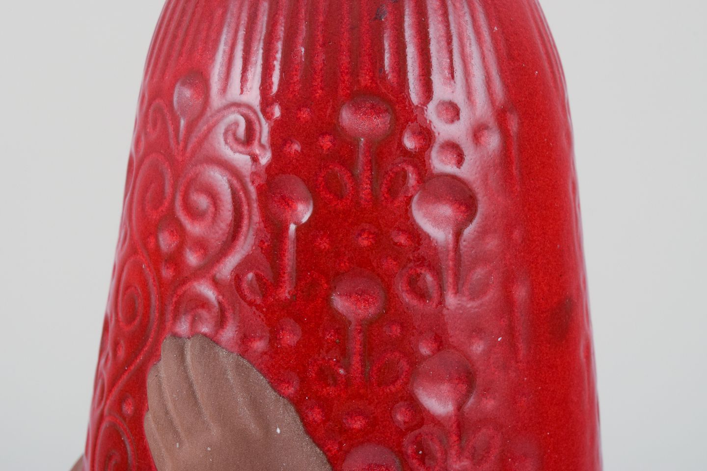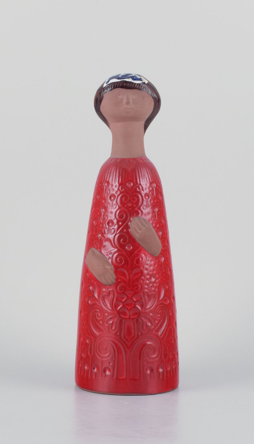 Mari Simmulson, stor håndlavet unika kvindeskulptur i keramik med dybrød glasur.