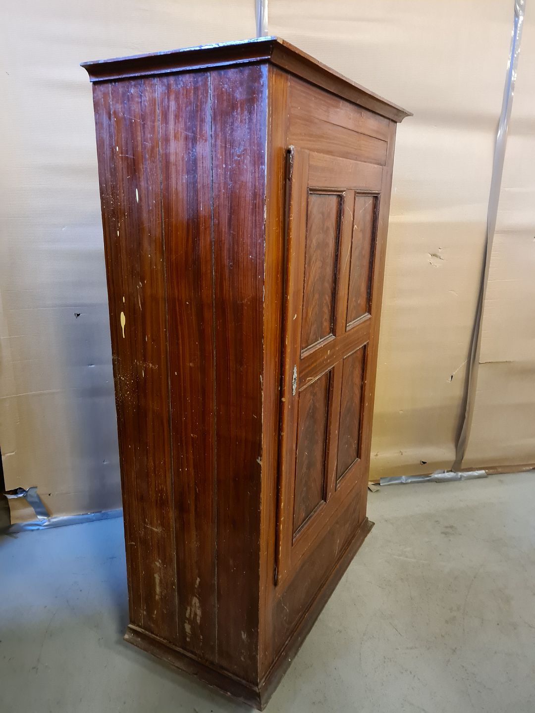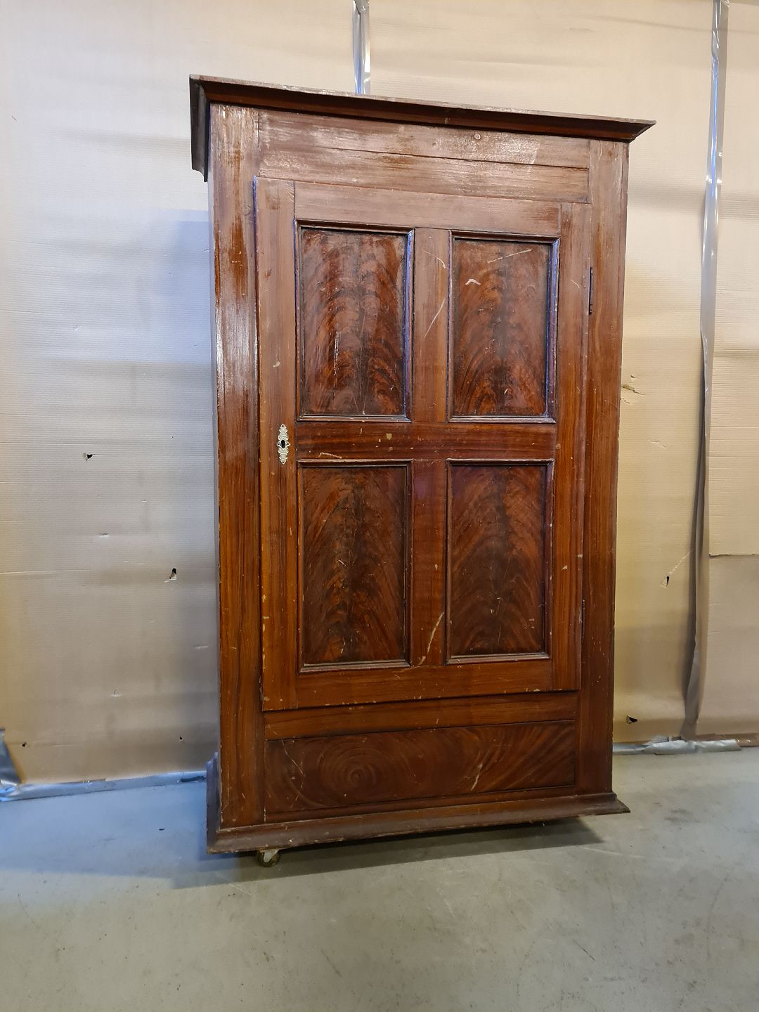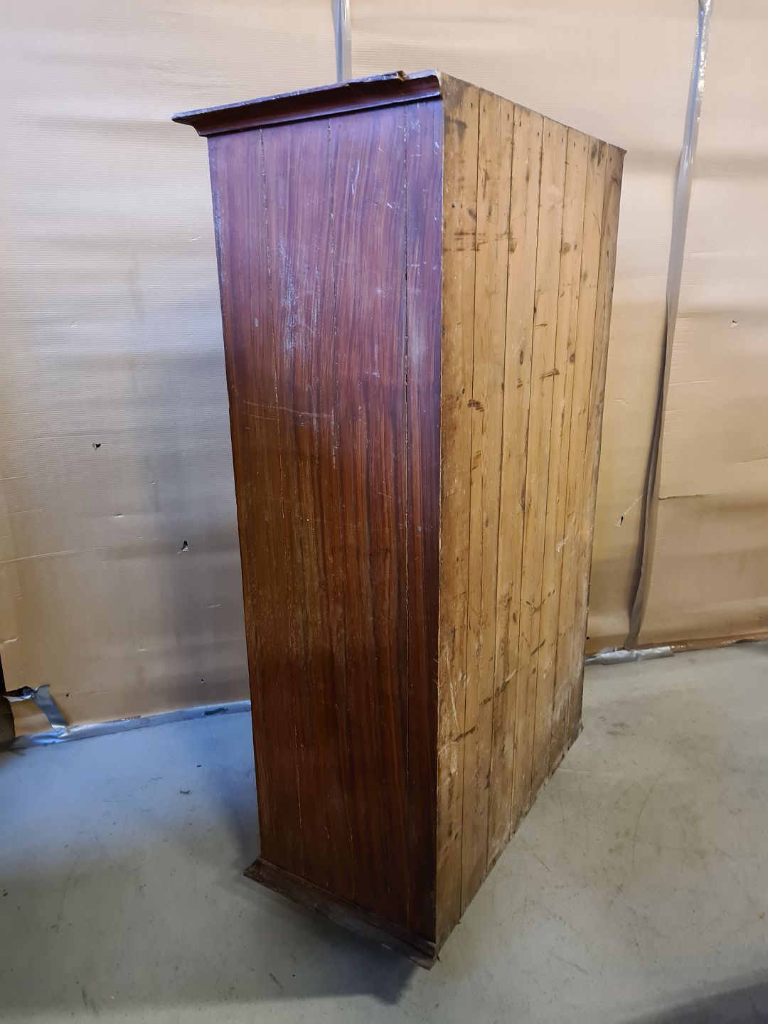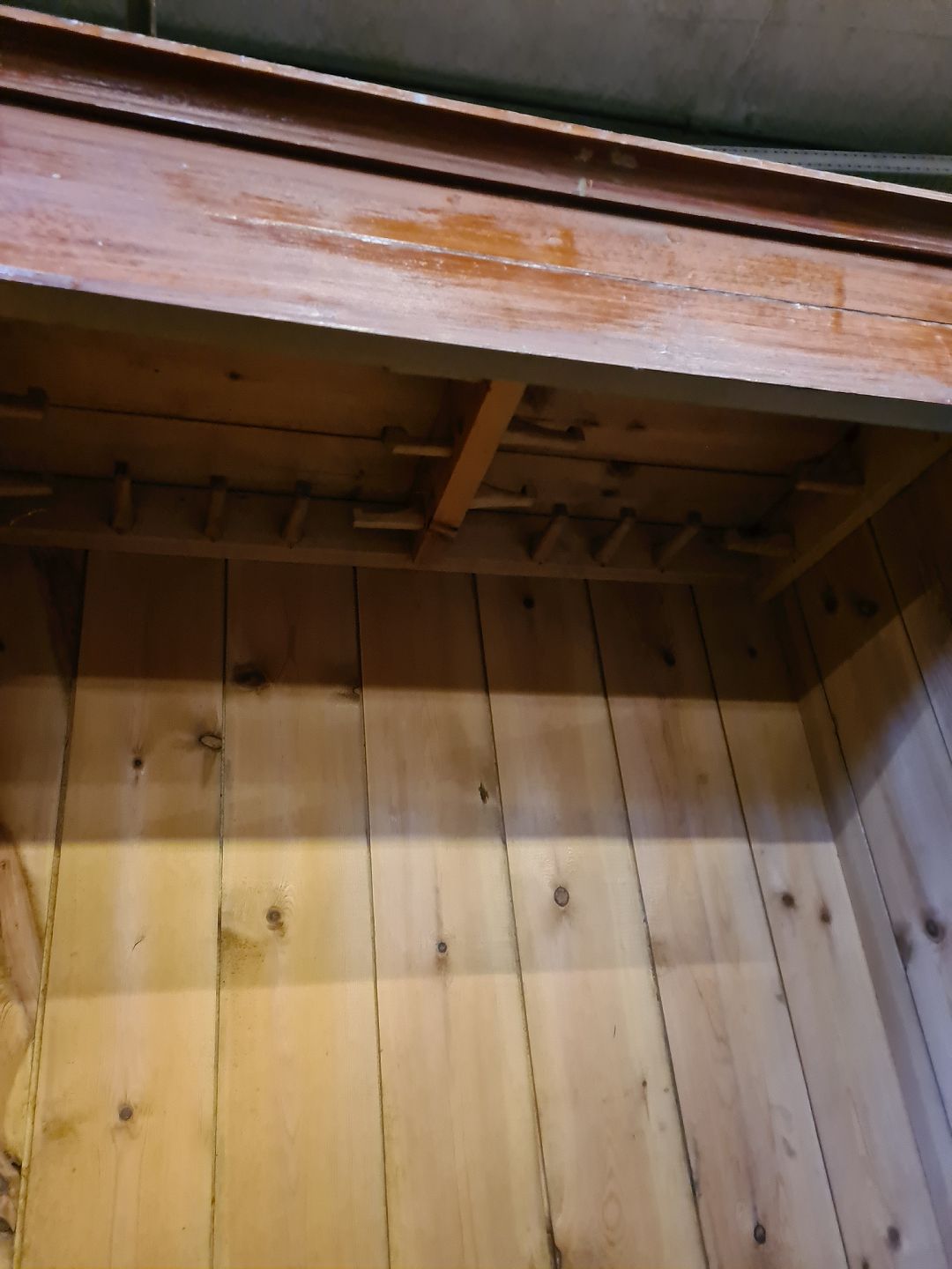 Malet karlekammerskab i massivt fyrretræ, fra 1900erne.