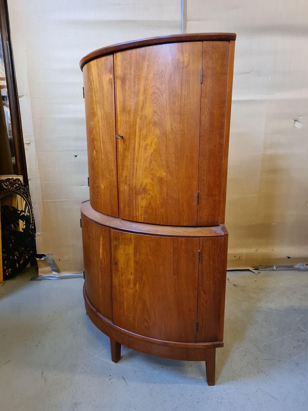 Hjørneskab i fineret teaktræ, fra 1960erne.