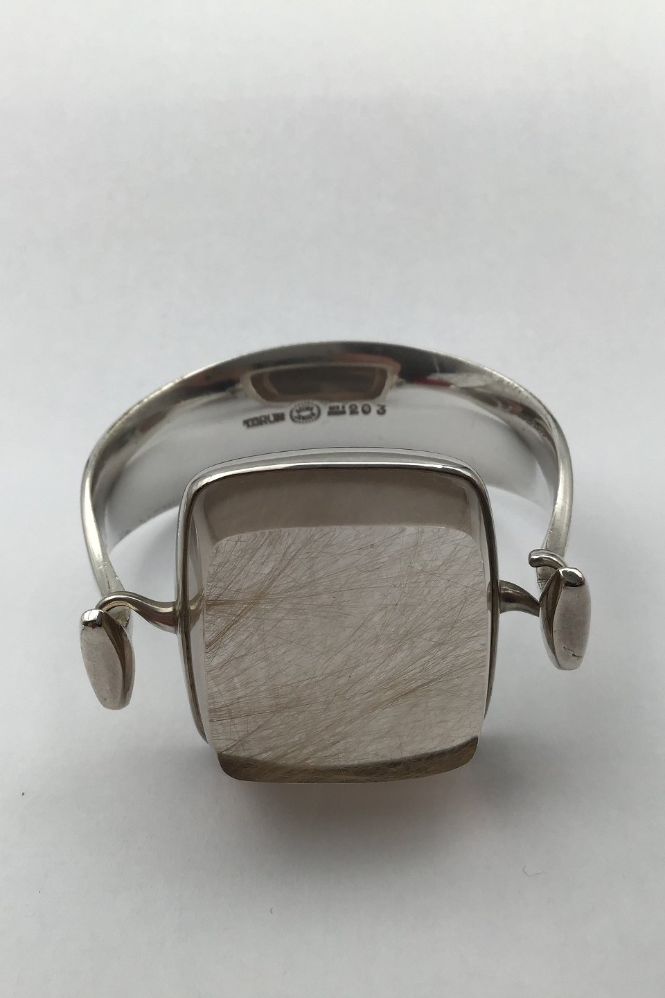 Georg Jensen Sterling Sølv Armring No. 203 + 203B Rutil Quartz Torun Måler indvendigt Diam 5.8 cm (2.28 inch) Sten 203B måler 3.5 cm x 3.6 cm (1.37 inch x 1.41 inch) Samlet vægt 73.5 gr / 2.59 oz