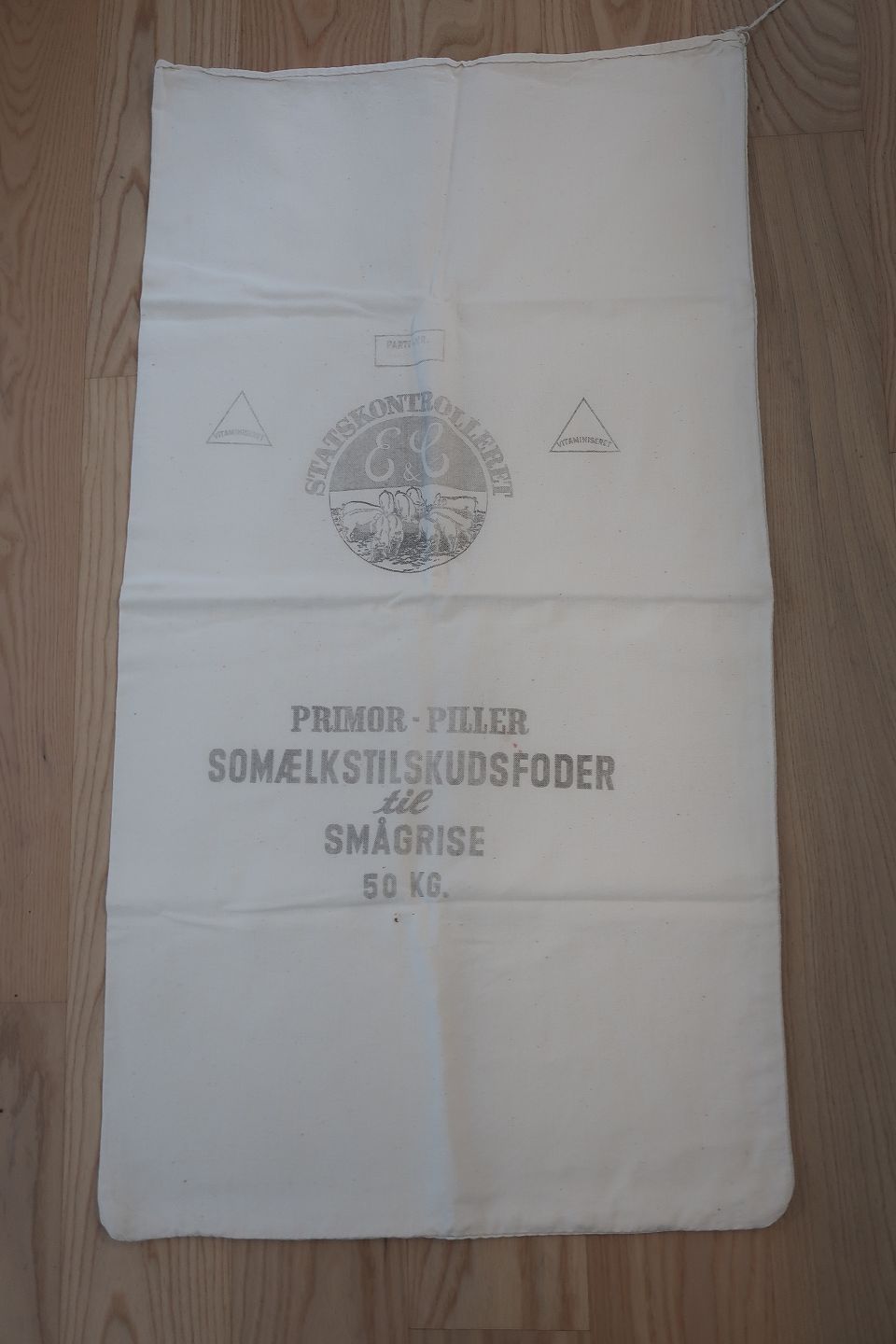 Text: "Statskontrolleret Vitaminiseret - Primol - Piller - Somælkstilskudsfoder til smågrise - 25 kg"