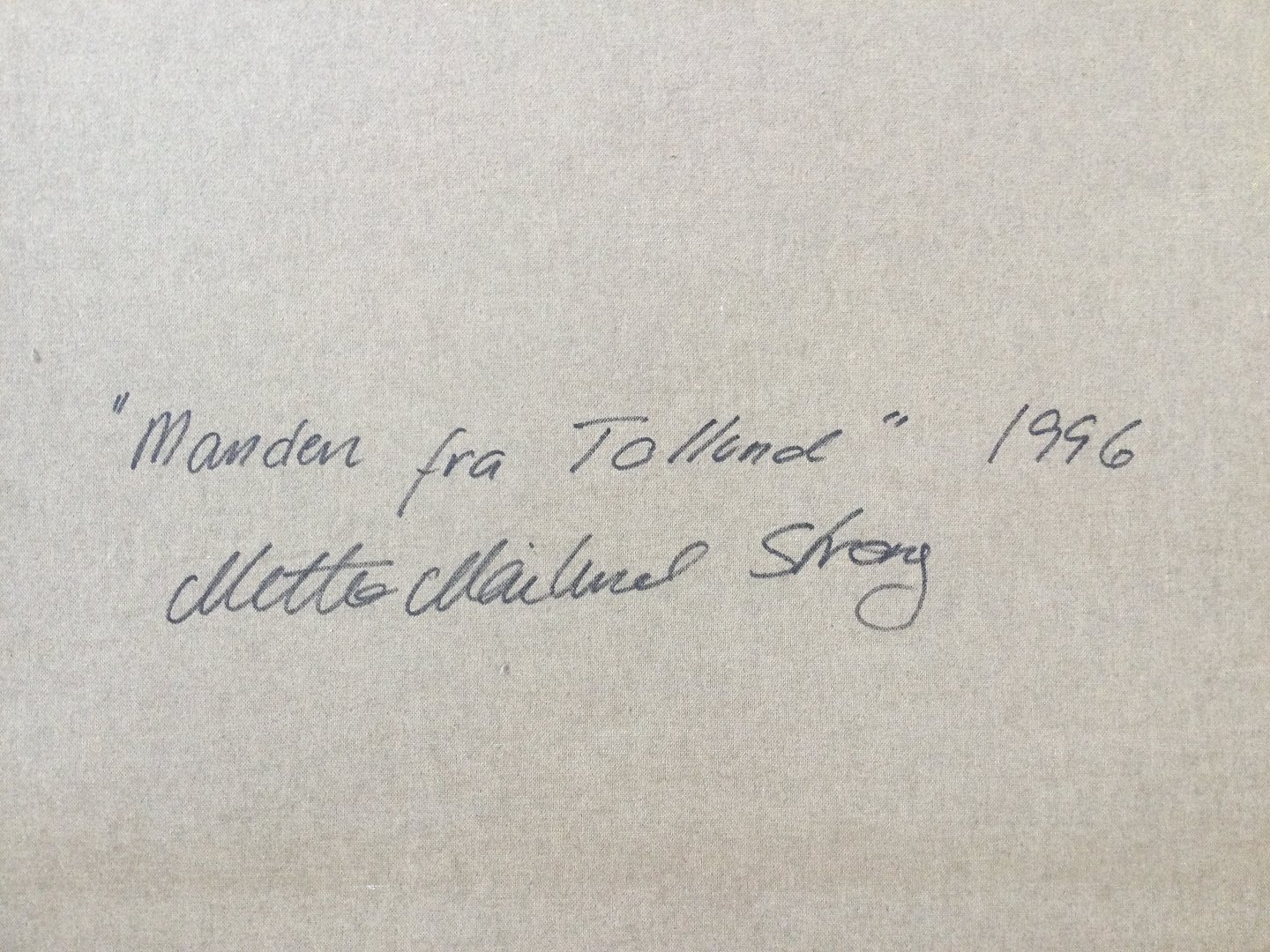 Sign.: Mette Mailund Strong 1996 (bagpå lærred)