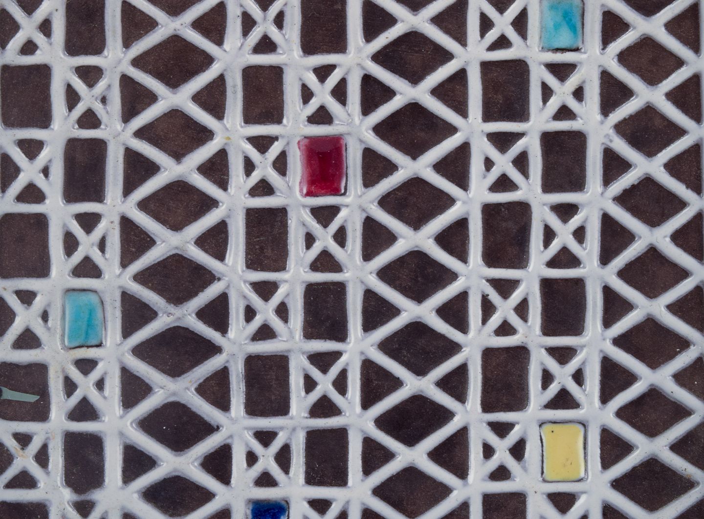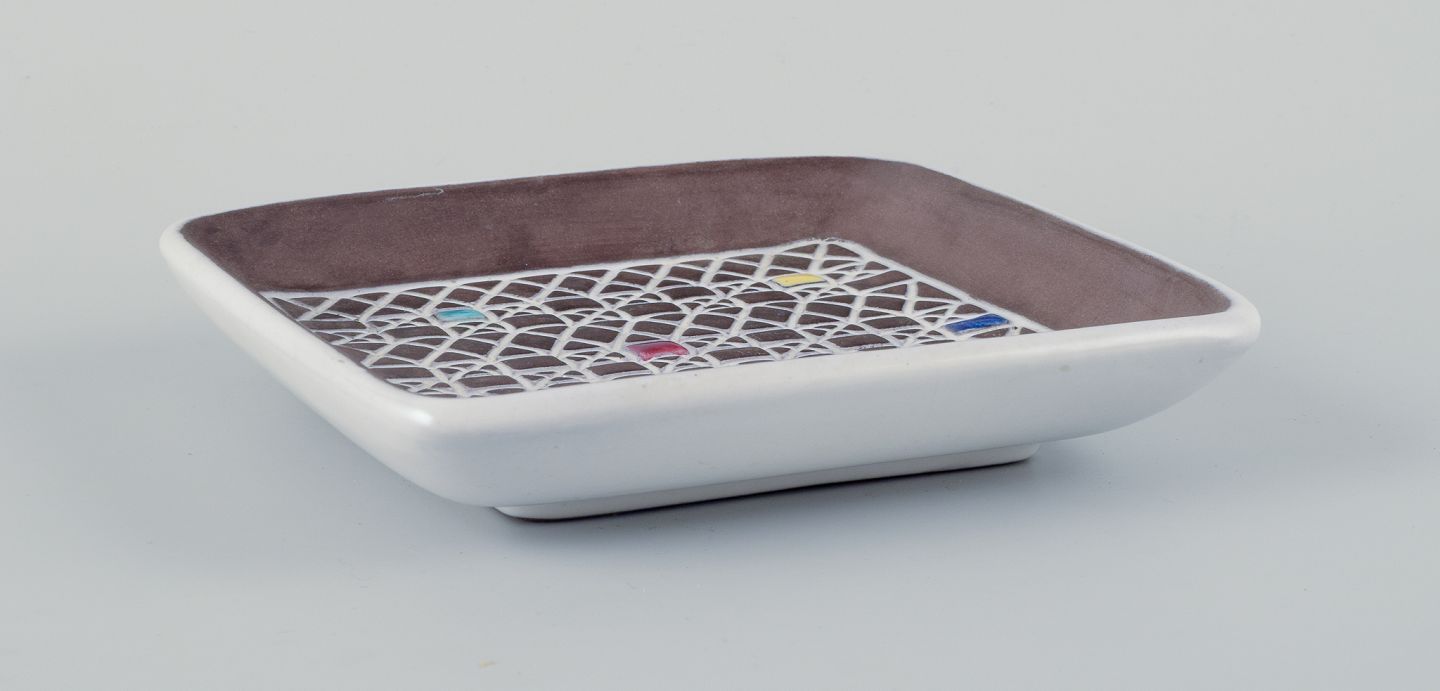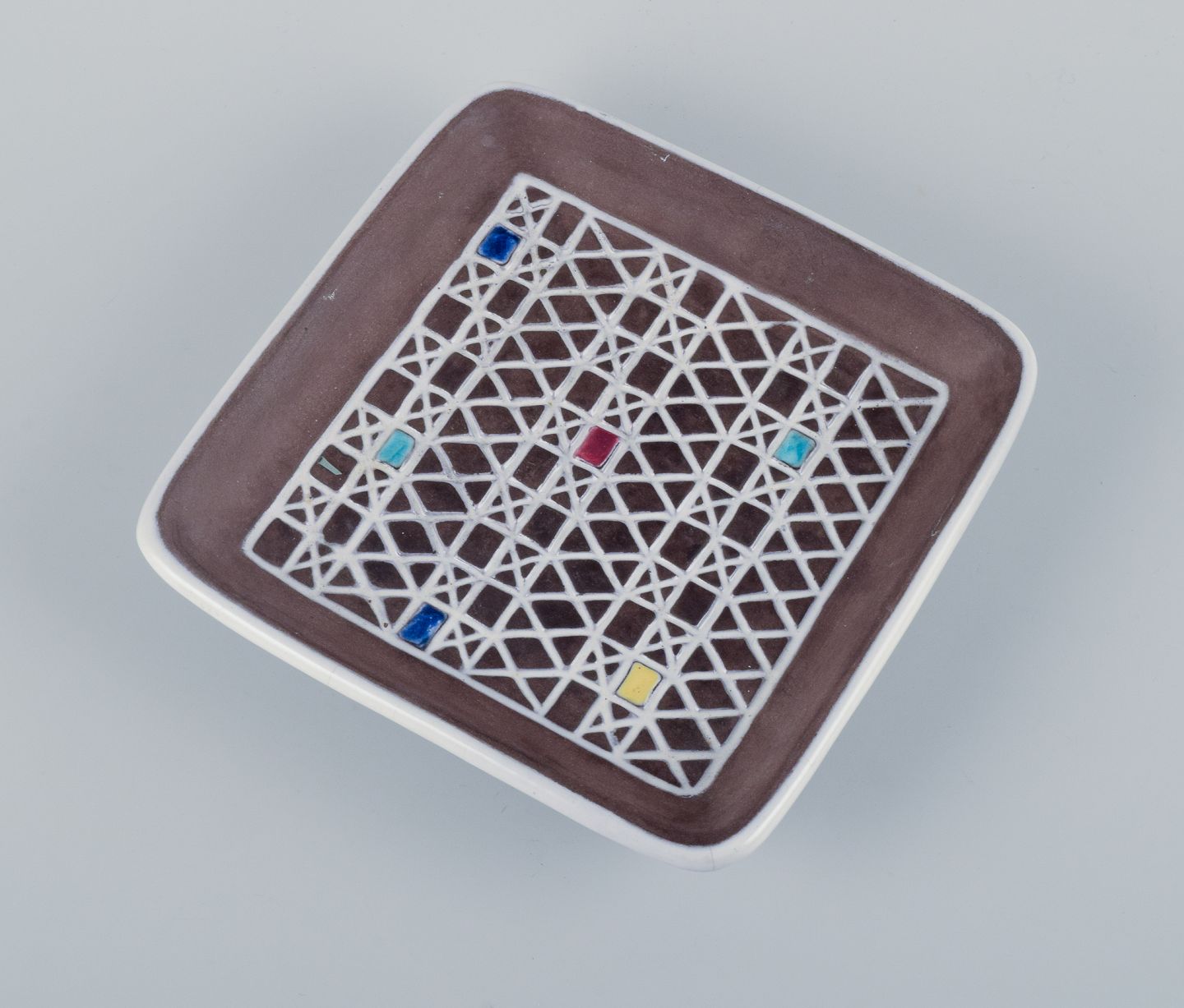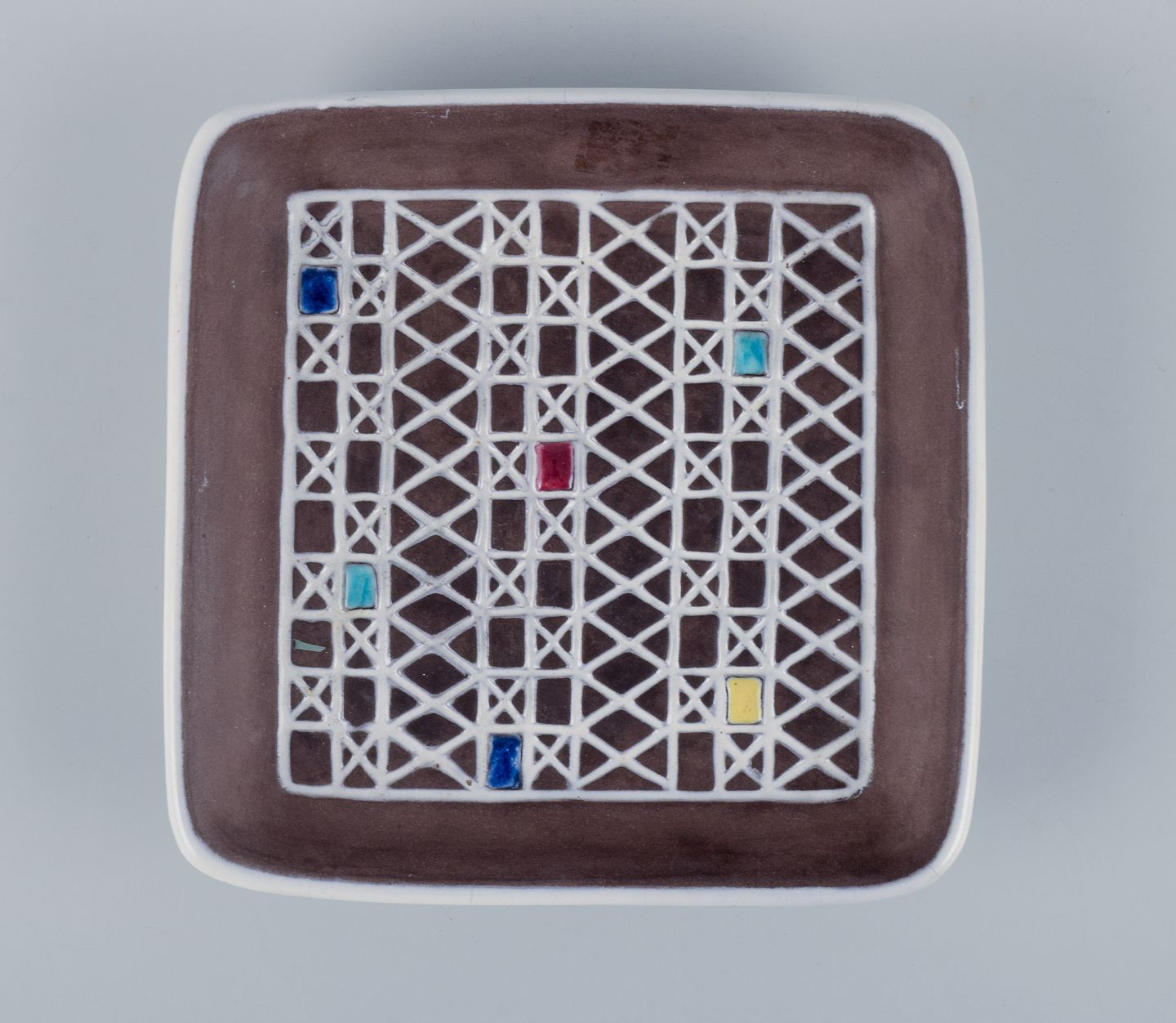 Ingrid Atterberg for Upsala-Ekeby, square "Corso" ceramic bowl with a geometric pattern.
