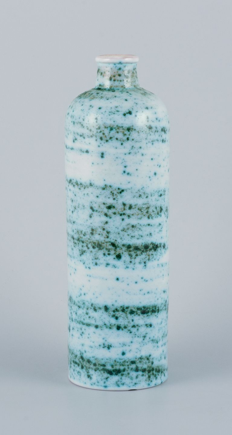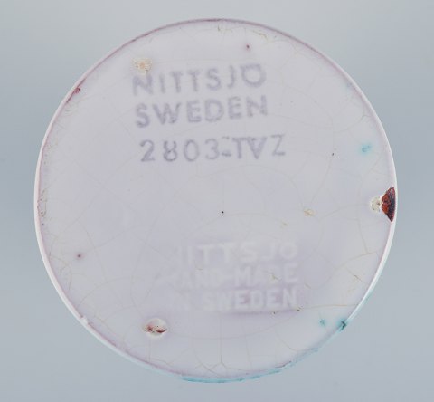 Nittsjö, Sweden, ceramic vase, green shaded glaze on a white base.