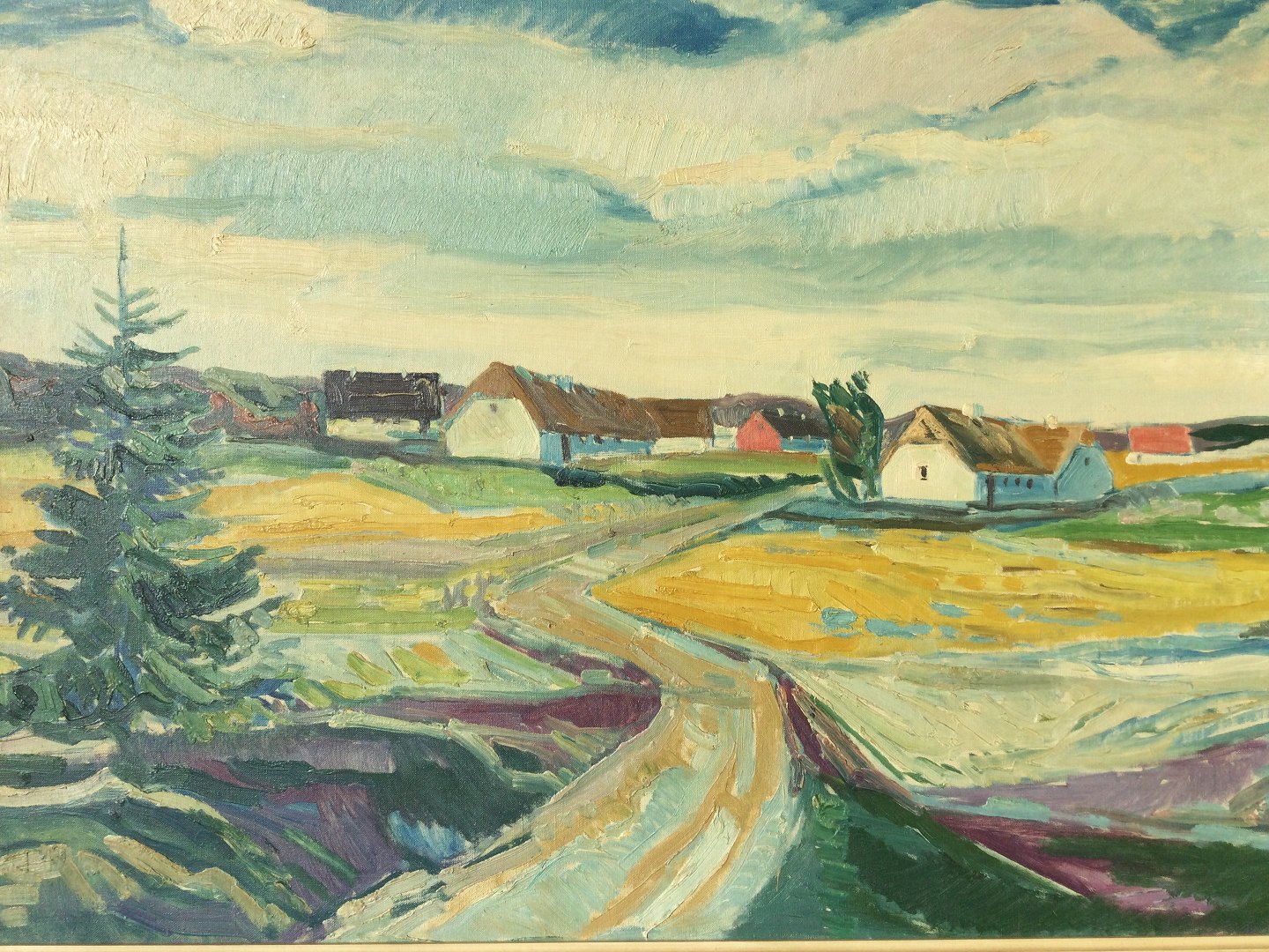 Maleri af Aage Strand - Gårde i landskab.