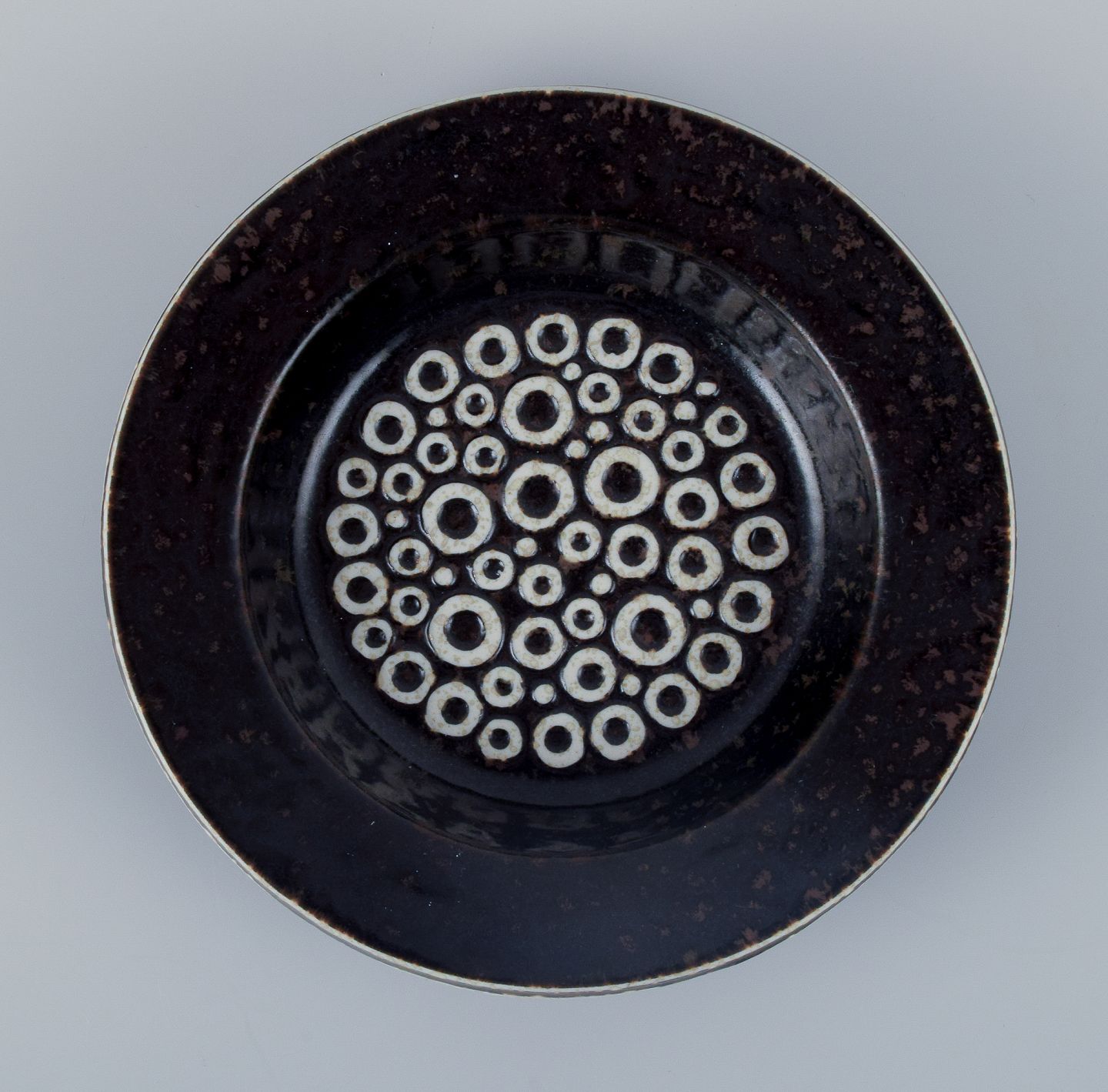 Britt-Louise Sundell (1928-2011) for Gustavsberg Studiohand, Sweden, ceramic bowl in dark brown and sand-colored glaze.