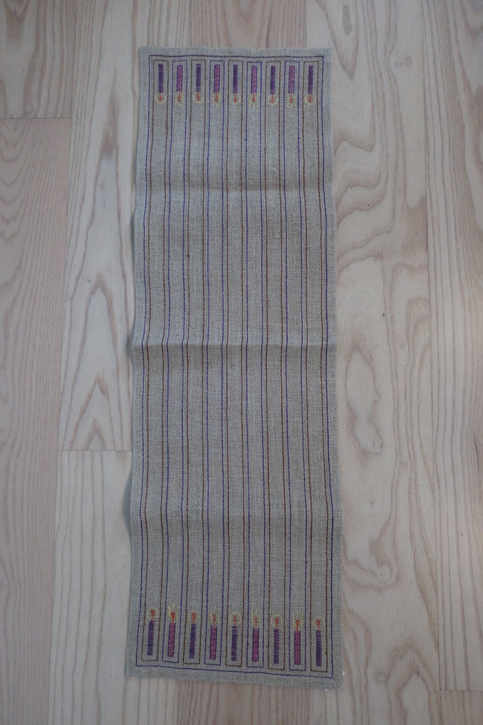 Gammel smuk jule-bordløber, håndbroderet