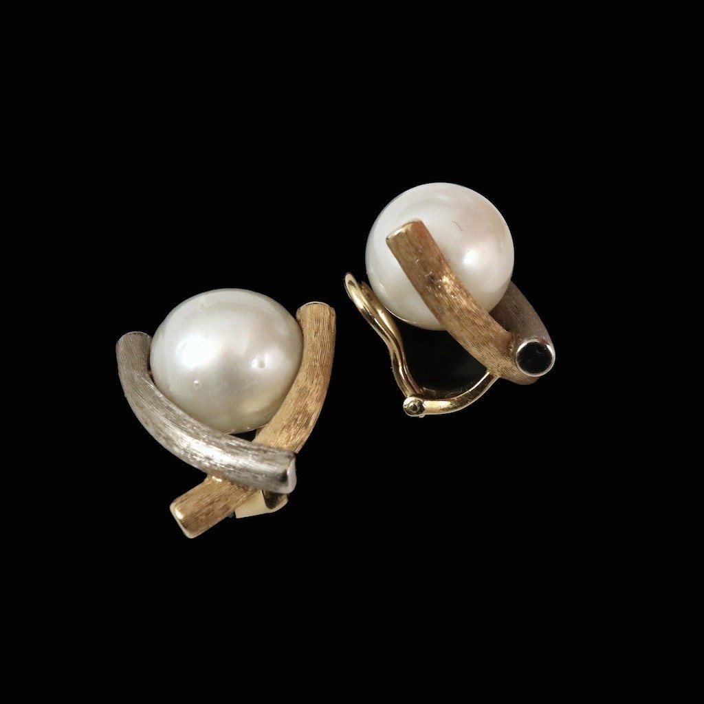 Frantz Hingelberg. Øreklips i 14k guld og hvidguld med Tahiti perler.
