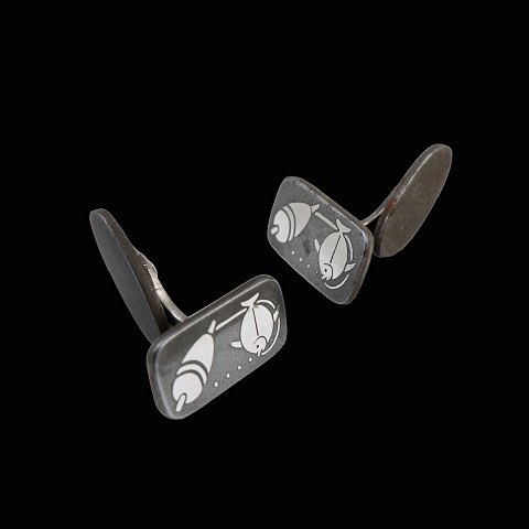 Georg Jensen Manchetknapper i jern med indlagt sterling sølv #5008 - Arno Malinowski.