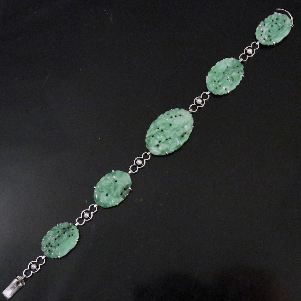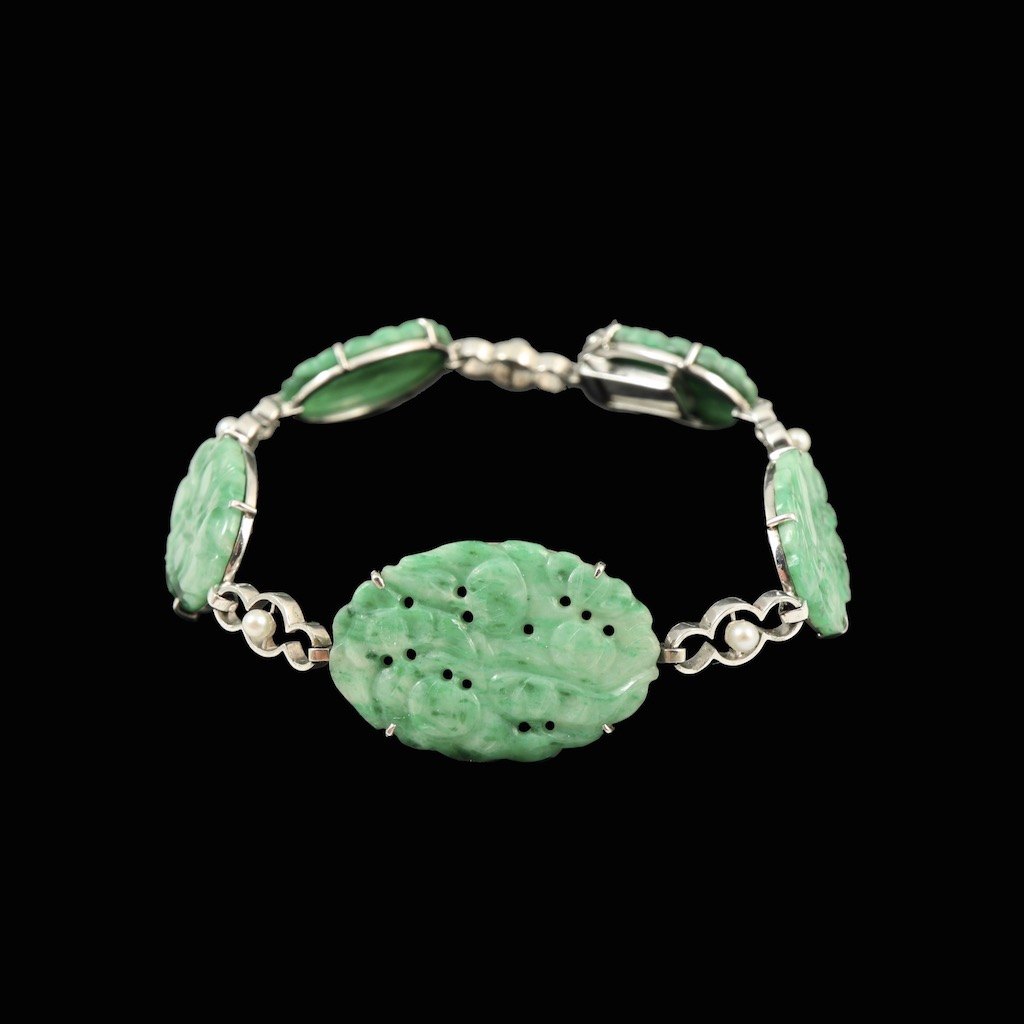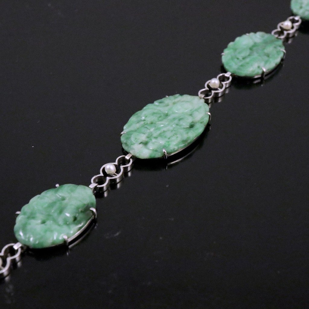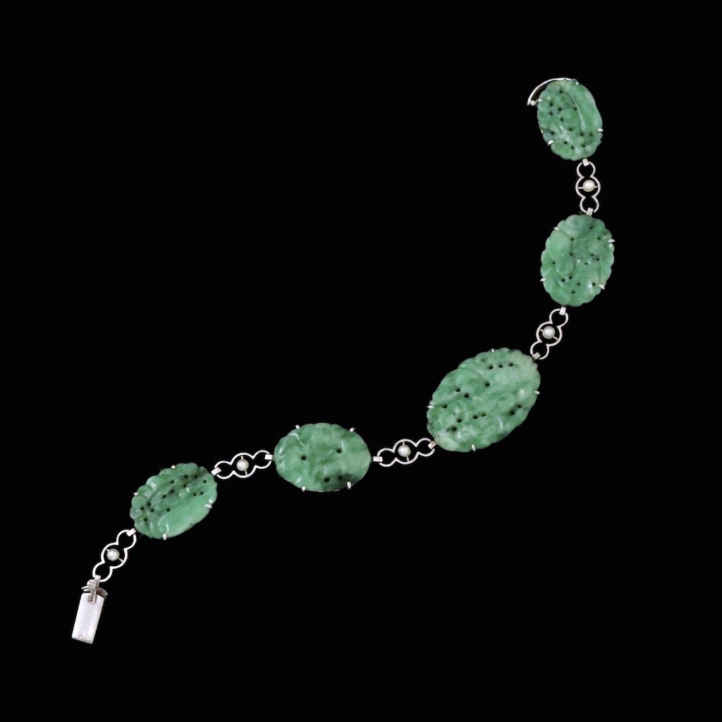 Armbånd i 18k hvidguld med Jade og perler.