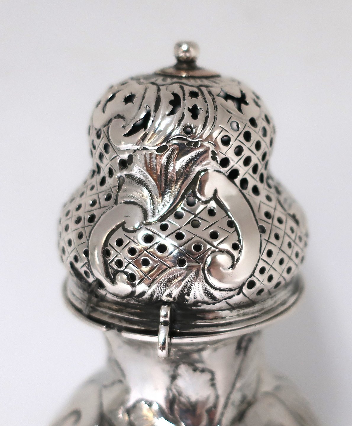 Thomas Andreas Westrup, København. Sølv strøbøsse (830). Højde 16 cm. Produceret 1763