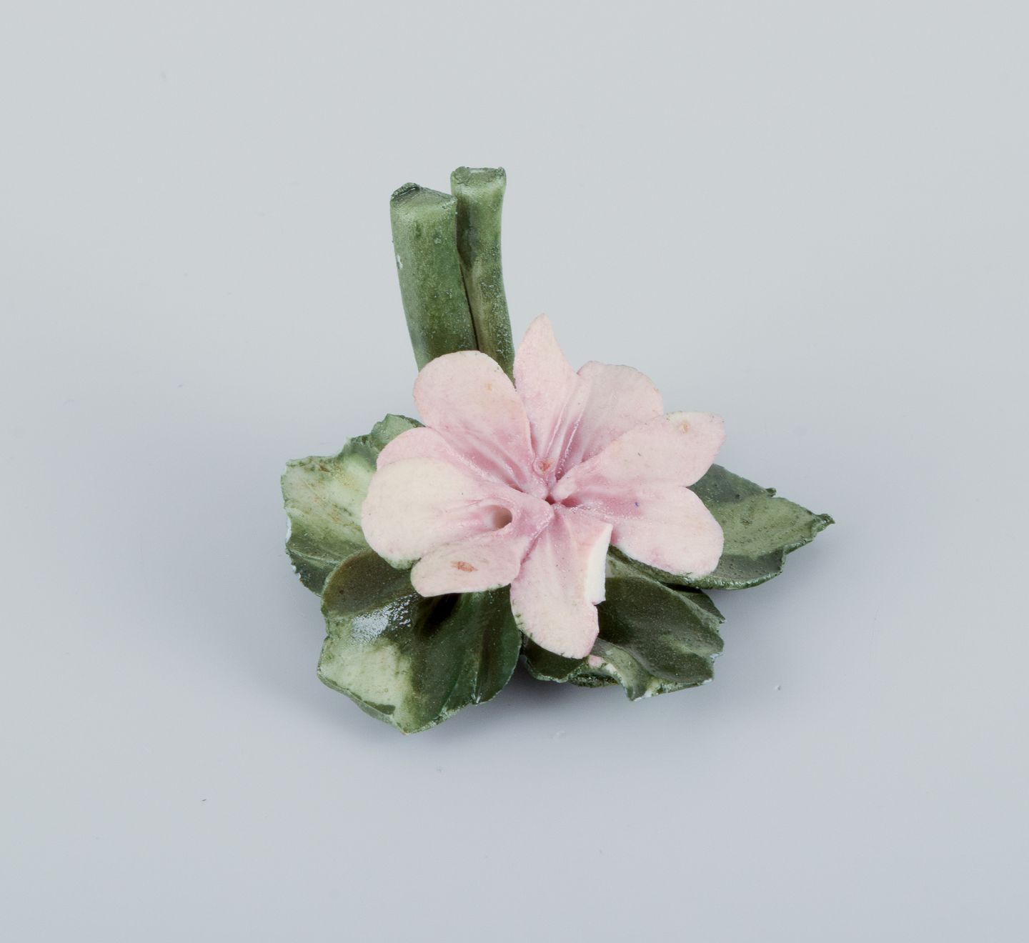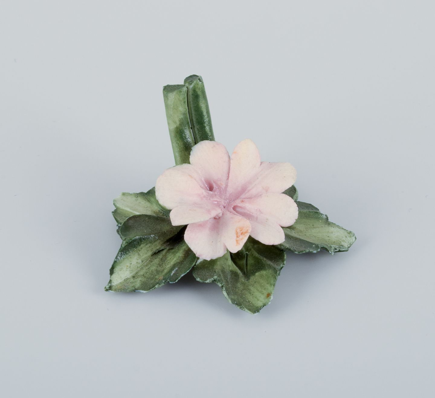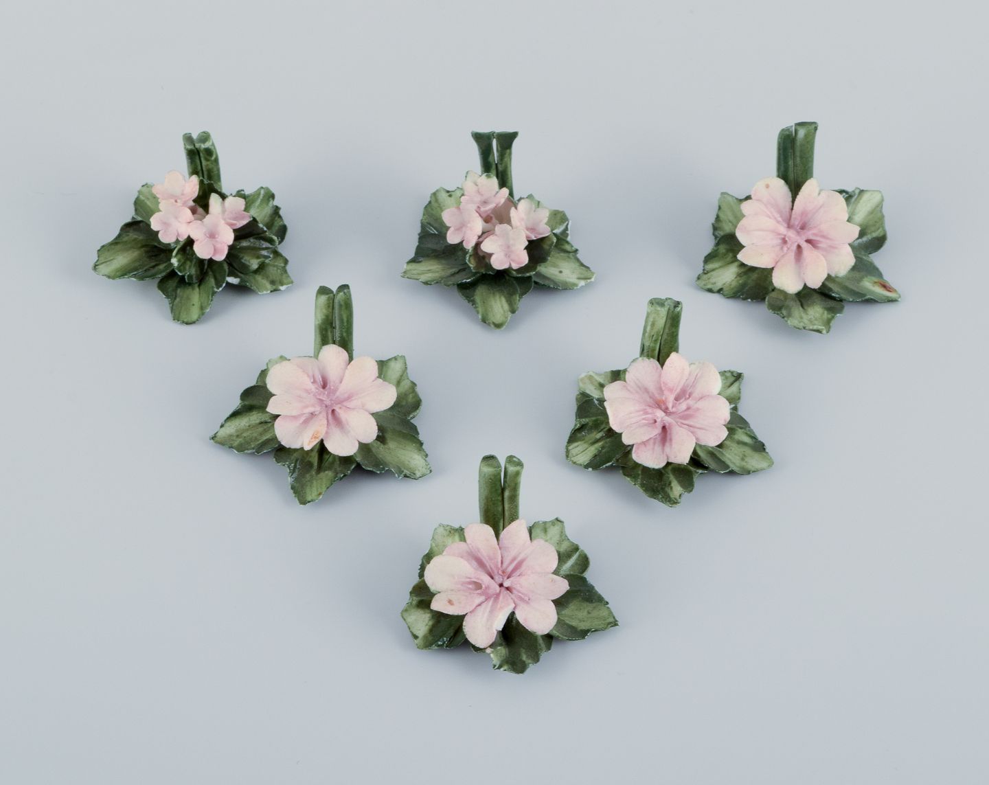 Capodimonte, Italien, et sæt på seks bordkortholdere i porcelæn udformet som åkander. Hånddekoreret. I overglasur.