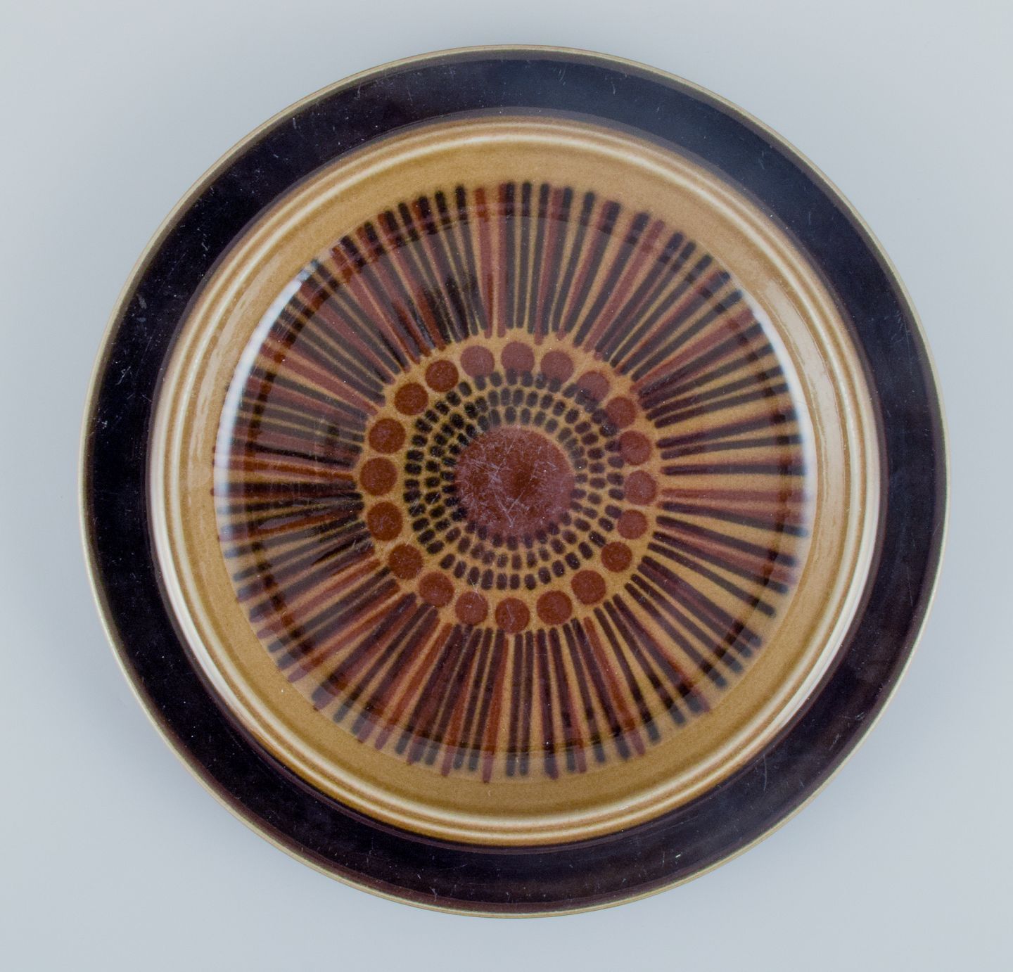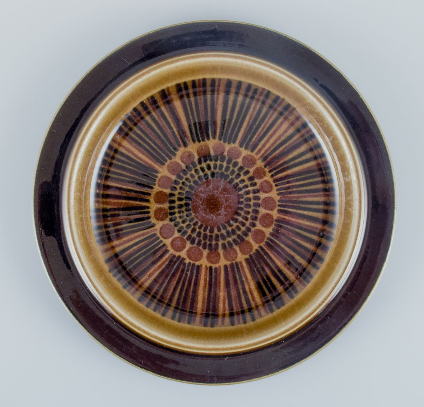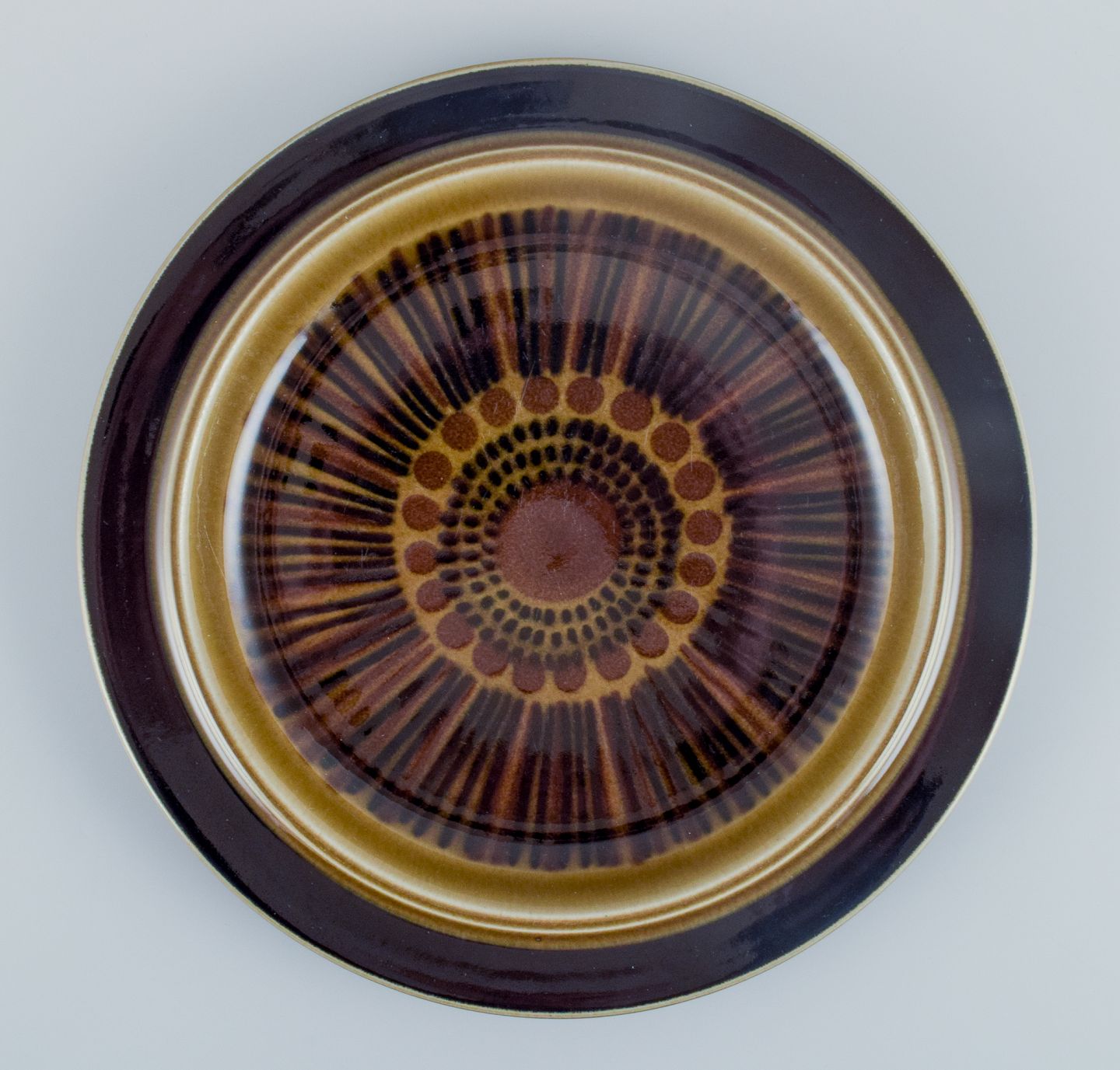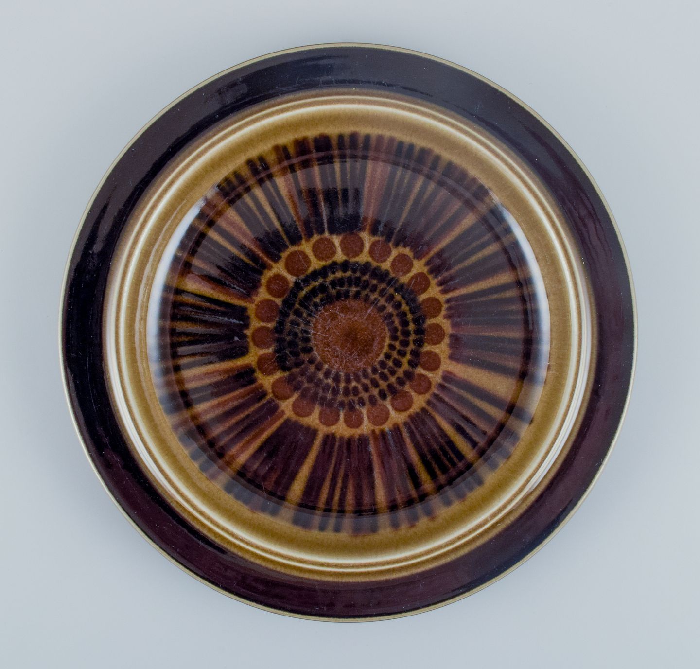 Et sæt på fire Arabia ”Kosmos” middagstallerkner i stentøj.