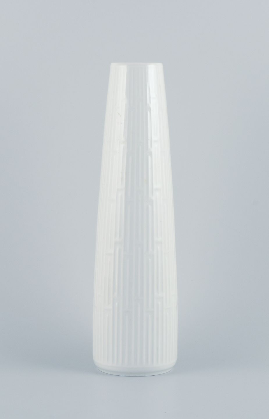 Hans Merz for Meissen, stor porcelænsvase i moderne design med geometriske felter og hvid glasur.