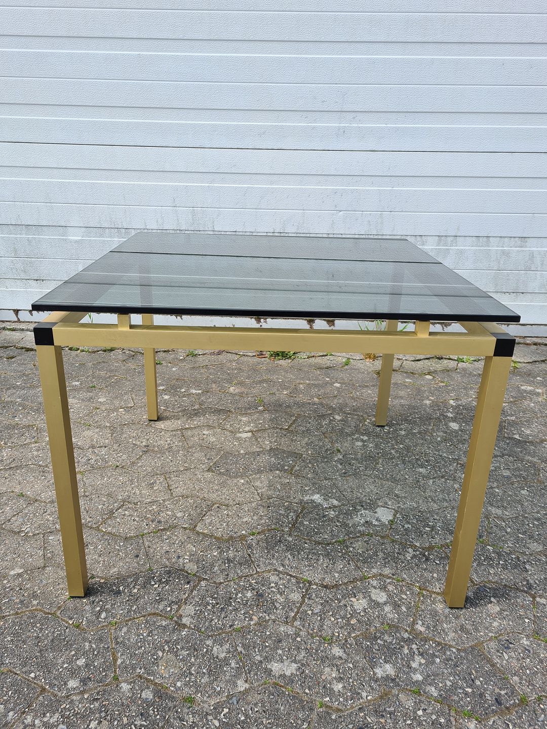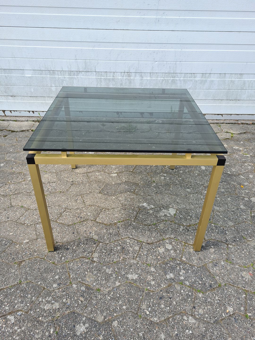 Lampebord i metal med glasplade, fra 1980erne.