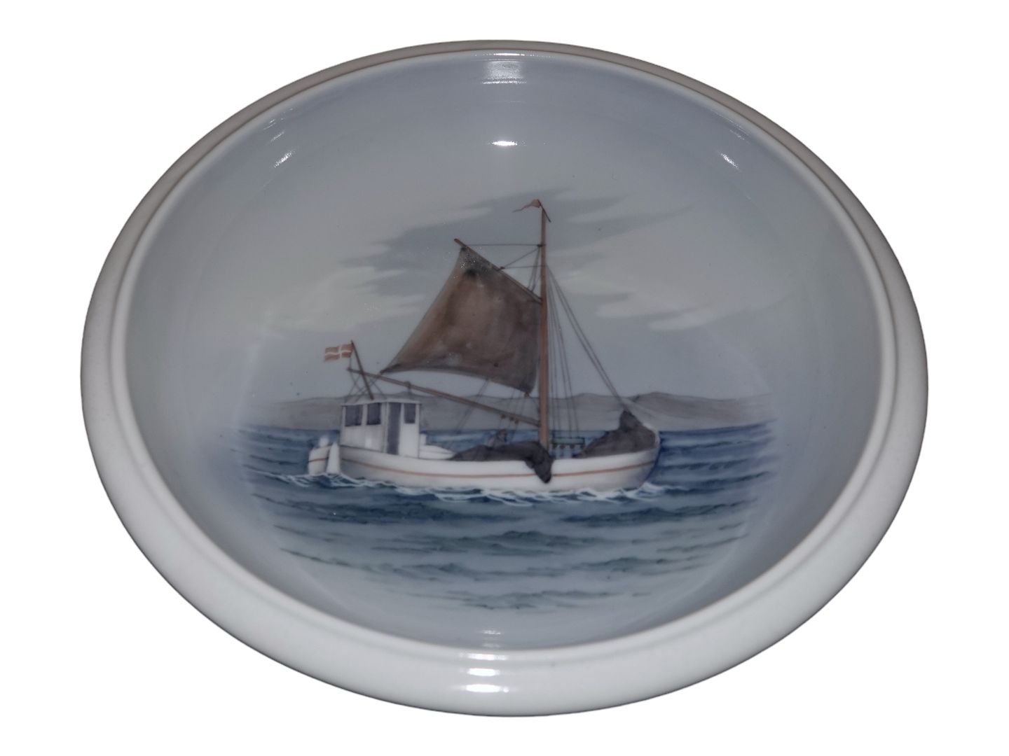 Royal Copenhagen rund skål med fiskekutter.