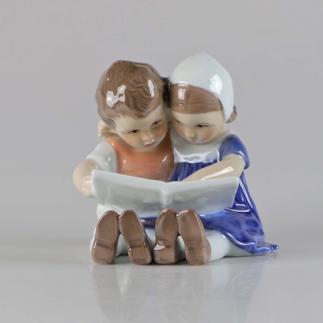 Figur i porcelæn med motiv af dreng og pige med bog no 402