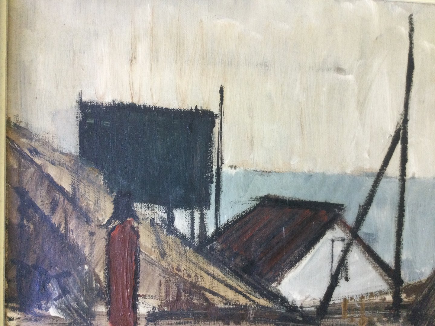 Maleri - Peder Brøndum Sørensen 1971 - Huse ved Havet.
