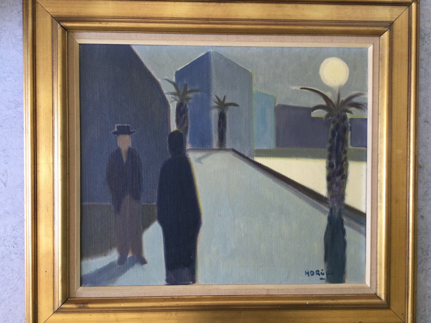 Maleri af Knud Horup - 2 personer på vej i Torremolinos 1957.