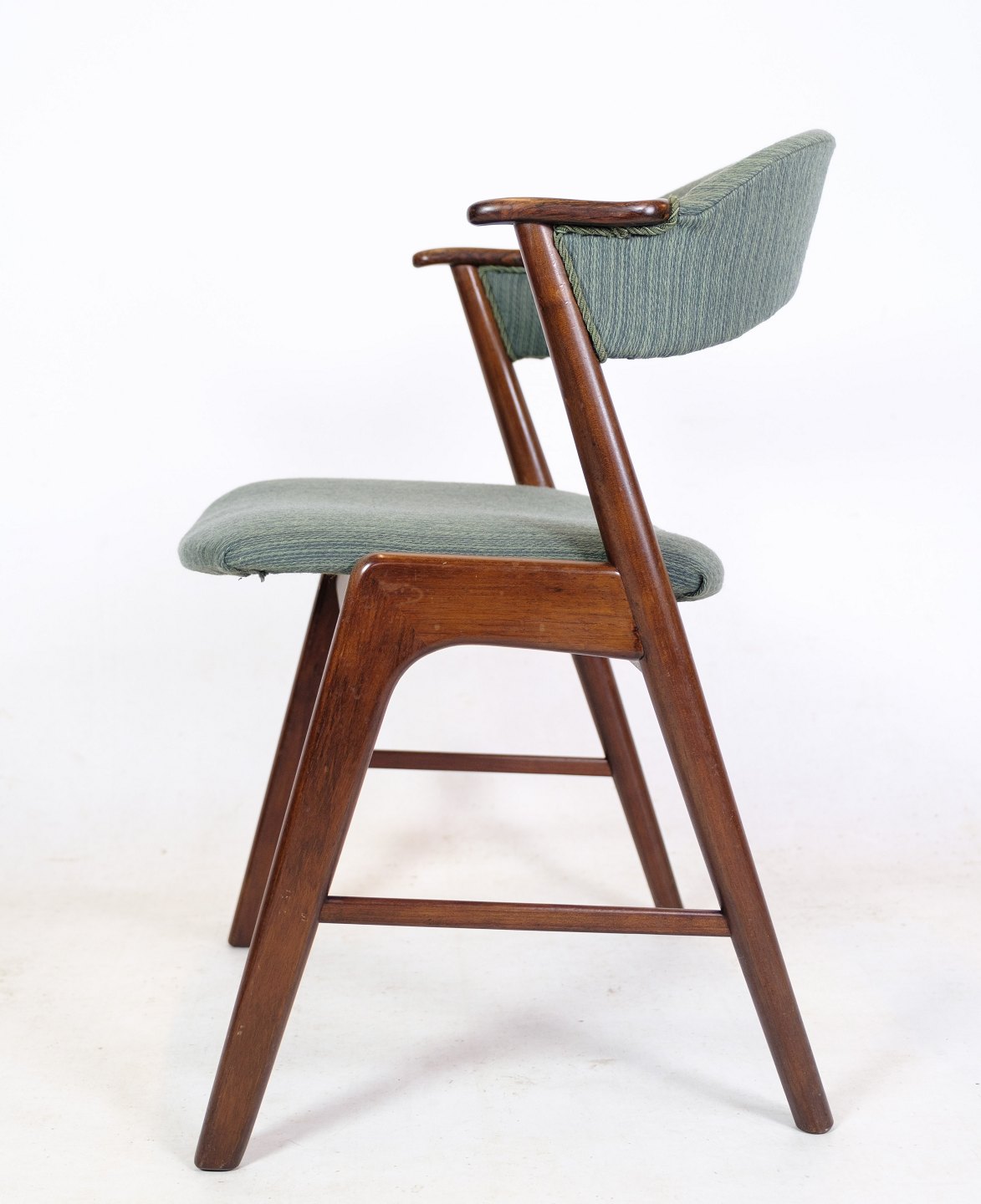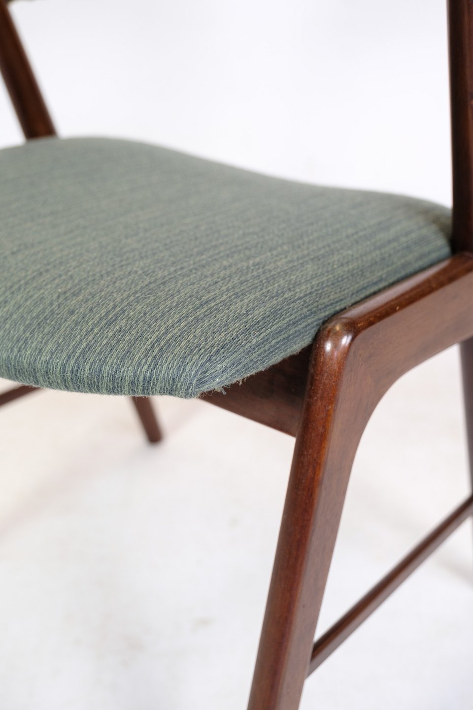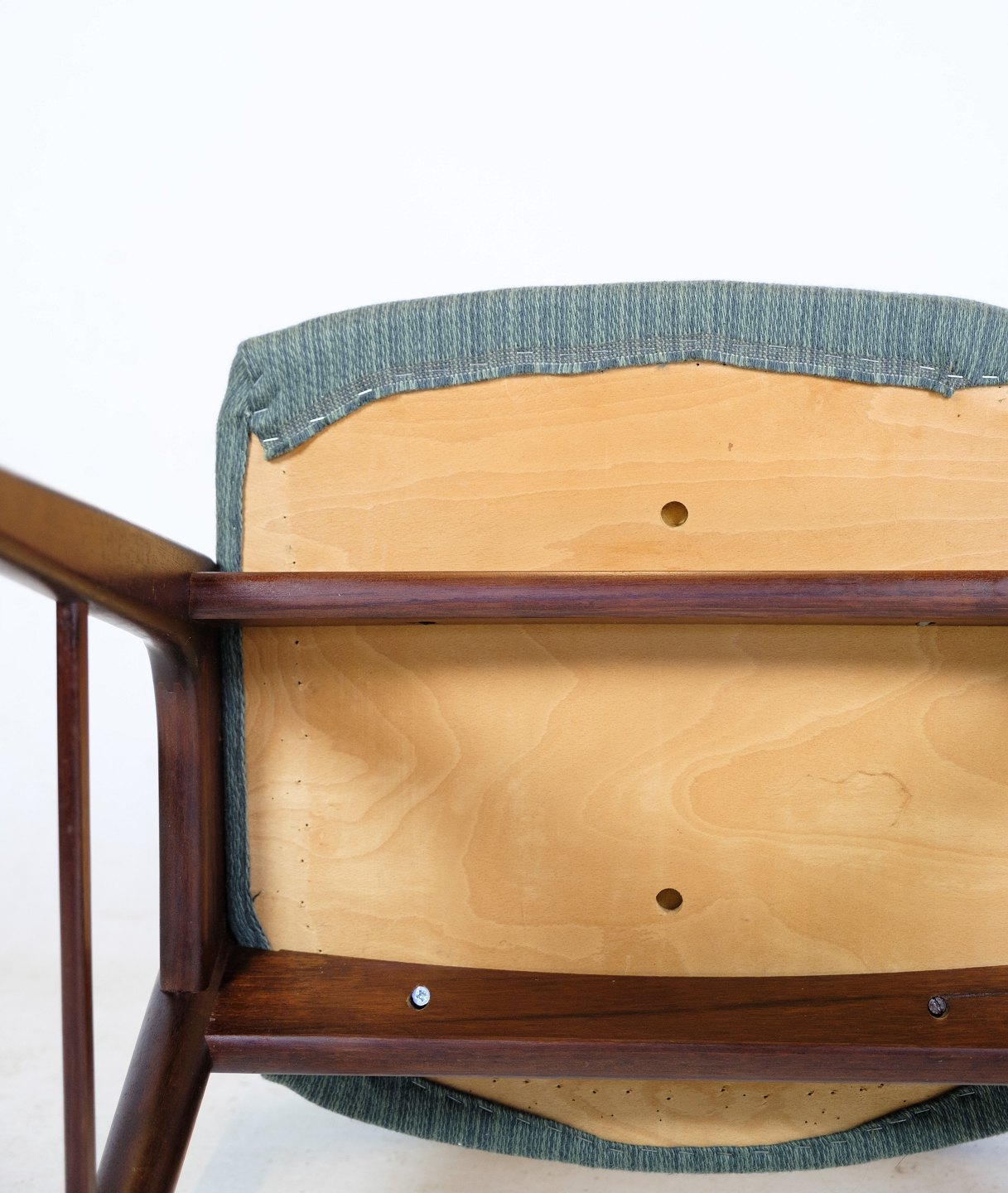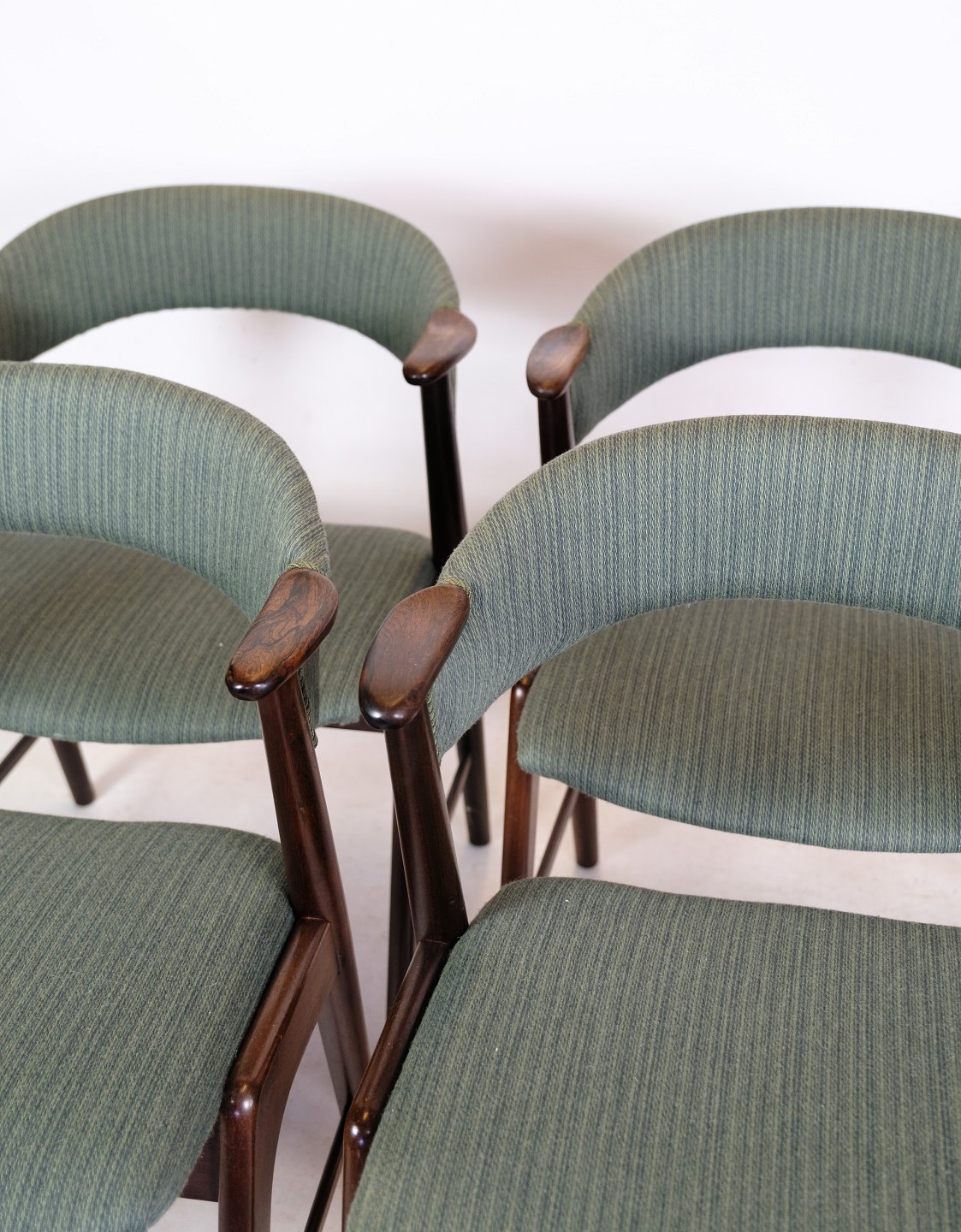 Sæt af 4 armstole af dansk design i palisander fremstillet af Korup Stolefabrik i blåt stof fra omkring 1960'erne.