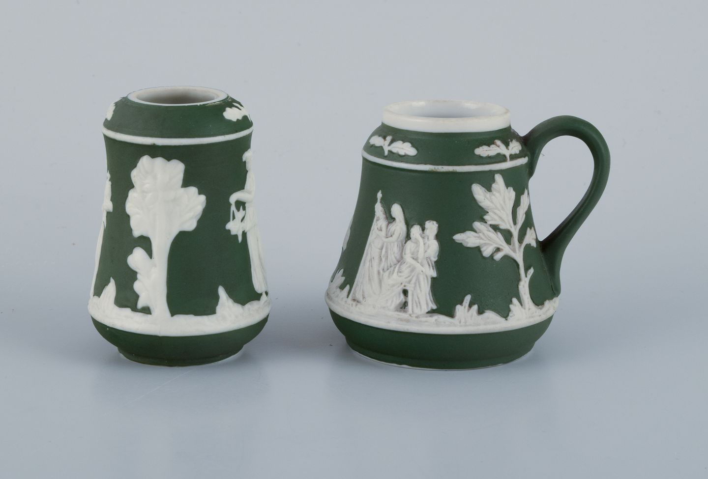 Adams, England, miniaturevase og miniaturekrus i biscuit.