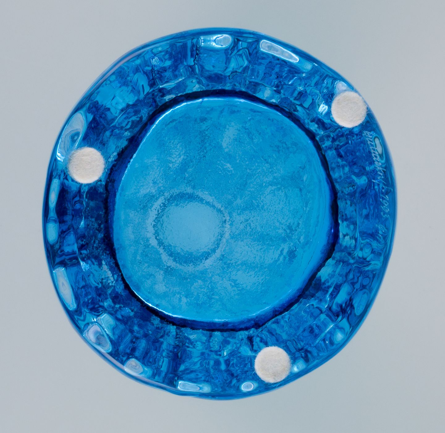 Gullaskruf, Sverige, glasvase i blåt mundblæst kunstglas.